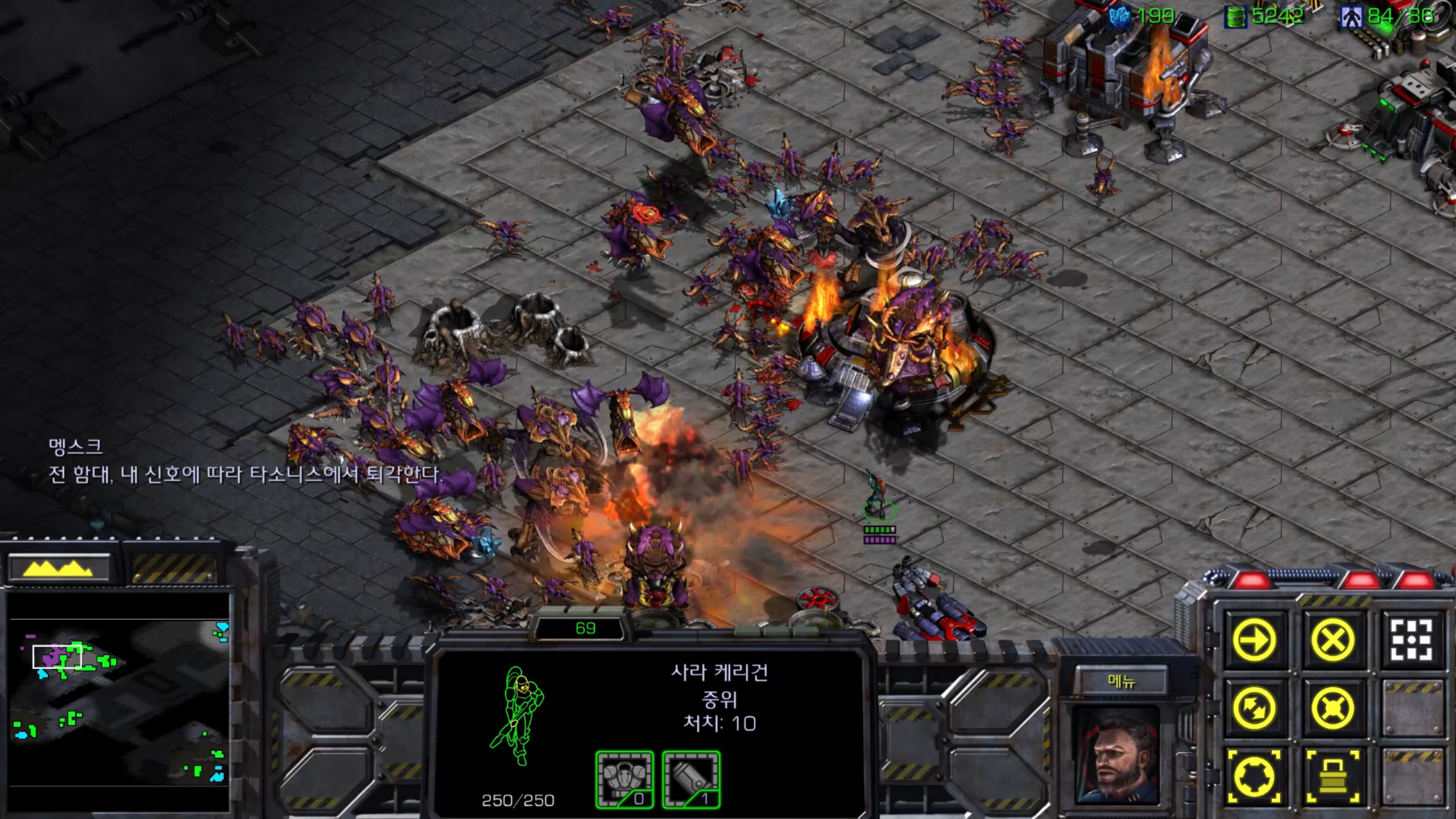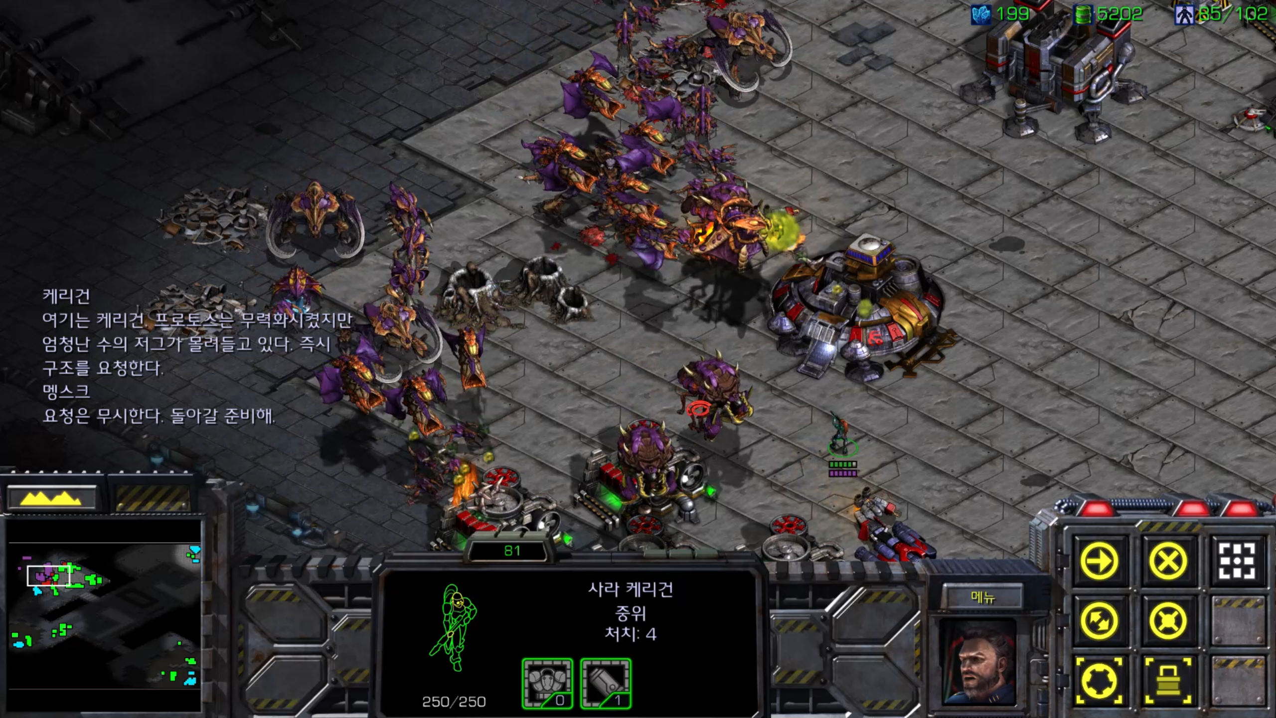 캐리건은 과거 저그를 상대로 하는 실험체로써 고통을 받았었고 이를 구해준 게 멩스크였었군요.