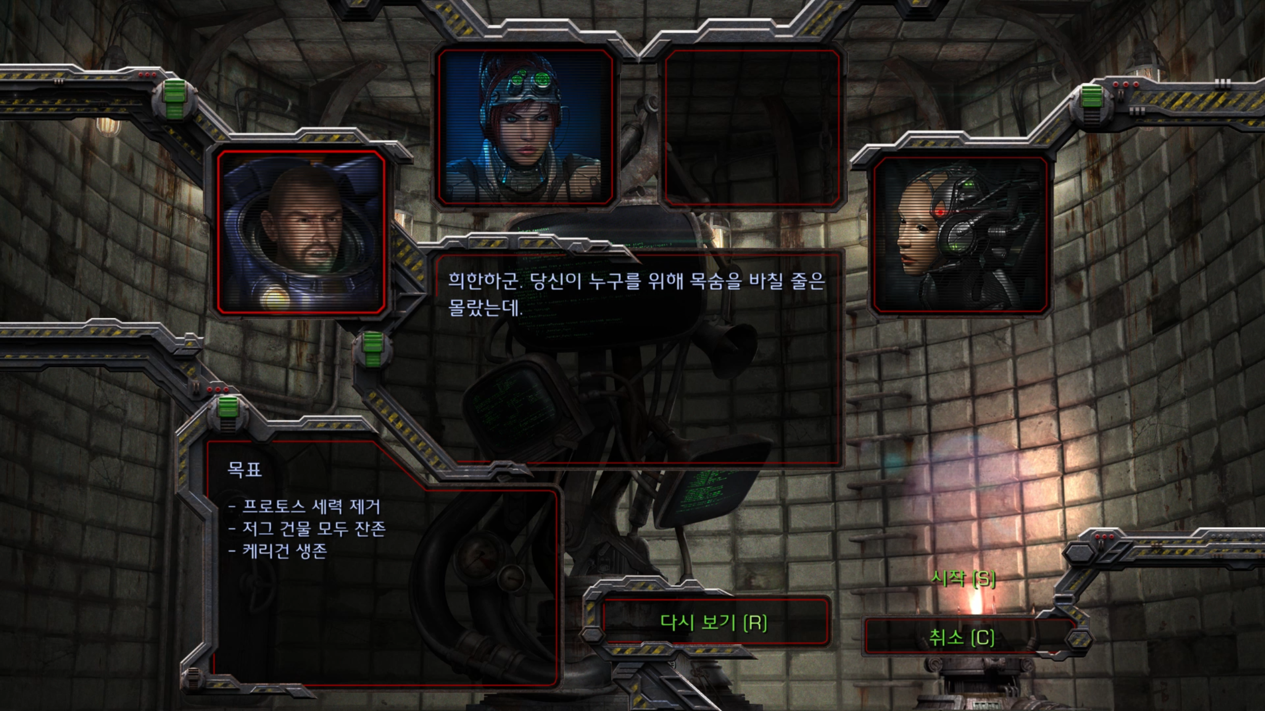 쨌든 게임이 시작하는 순간까지 캐리건의 임무 수행을 만류하는 레이너입니다.