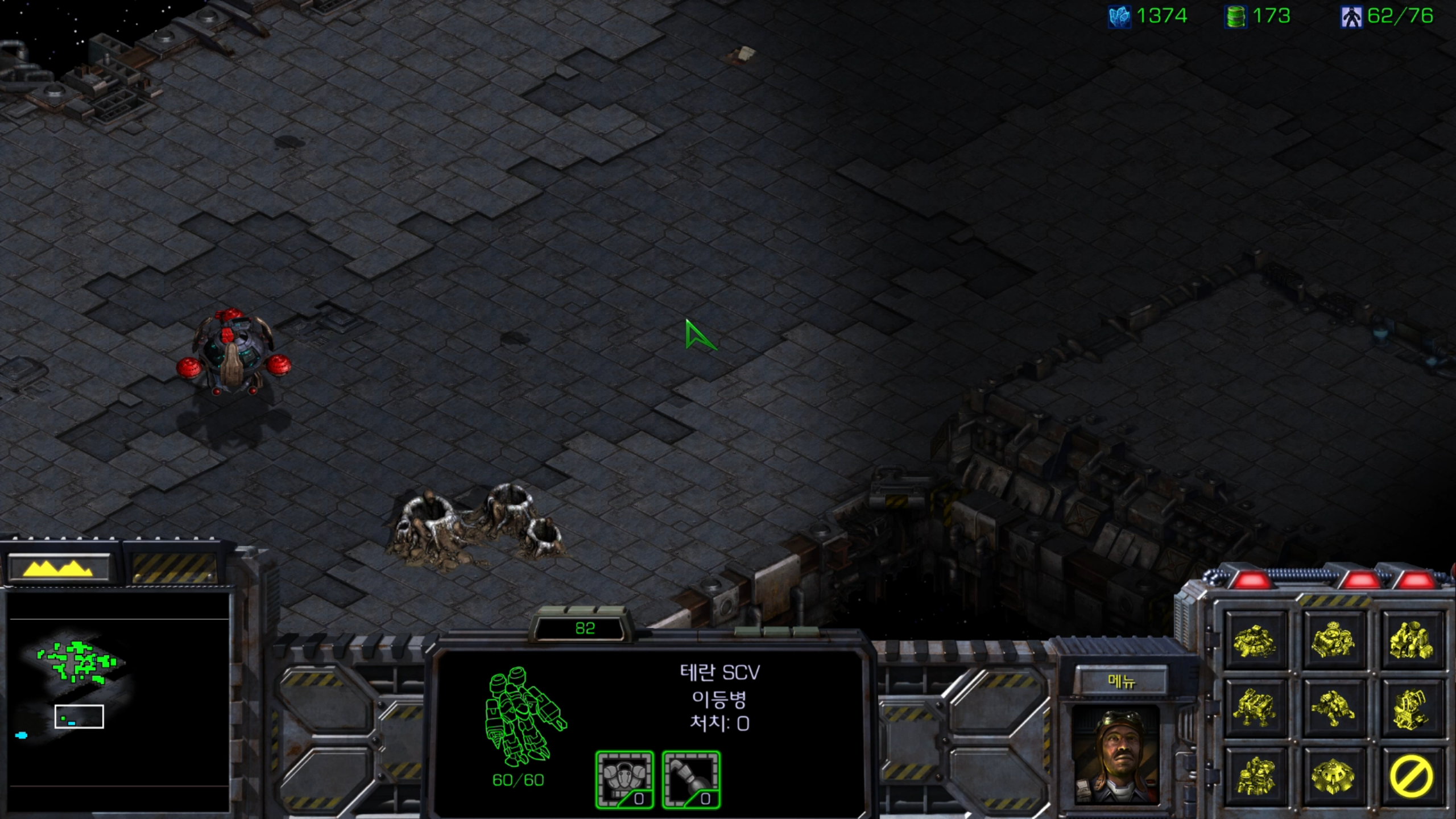 미네랄 고갈을 인제사 발견했네요. 저그에 대비해 수리를 해야 하니 얼른 기지를 옮기도록 합시다.