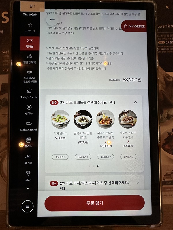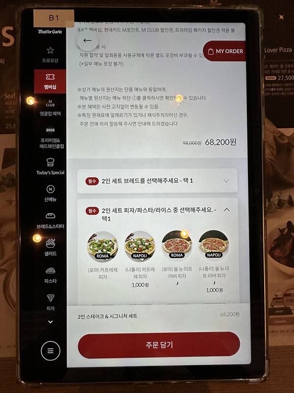 기본 브레드인 마늘빵하보다 9,000원인가 14,000원 정도 비싼 메뉴였는데, 비주얼만 봤을 때는 확실히 돈 값은 하는 것 같습니다.