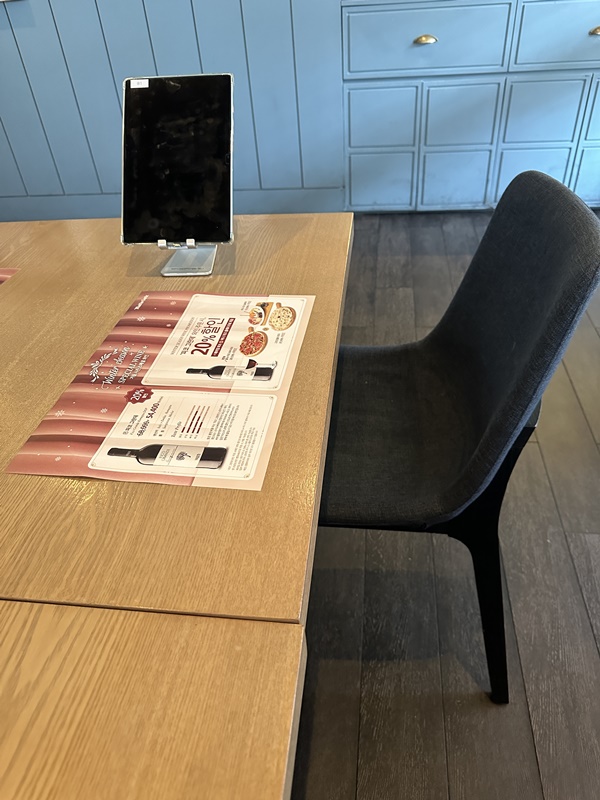 테이블에 식기류와 물티슈가 있는 게 좋았고요. 여기도 태블릿 메뉴판이 제공됩니다.
