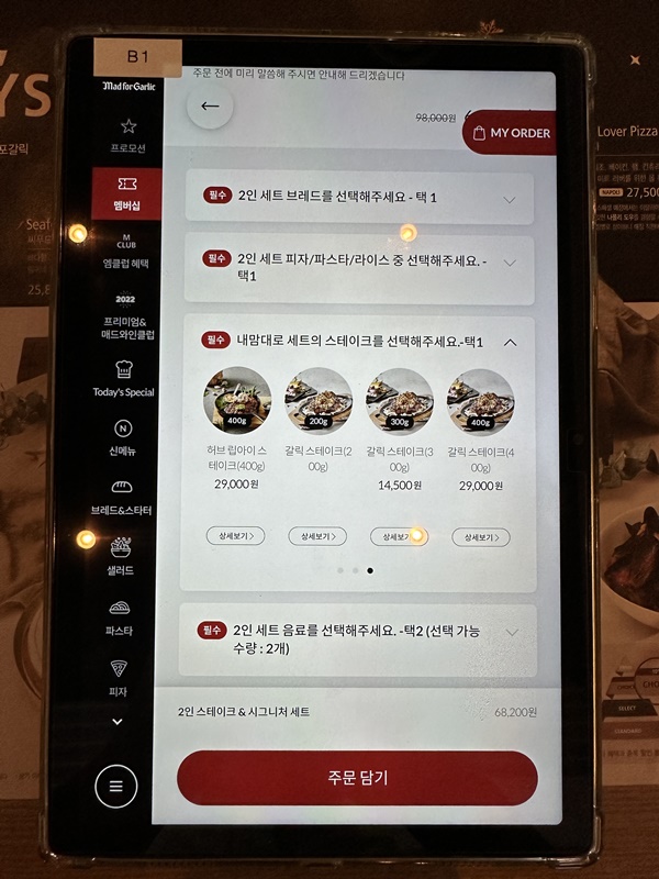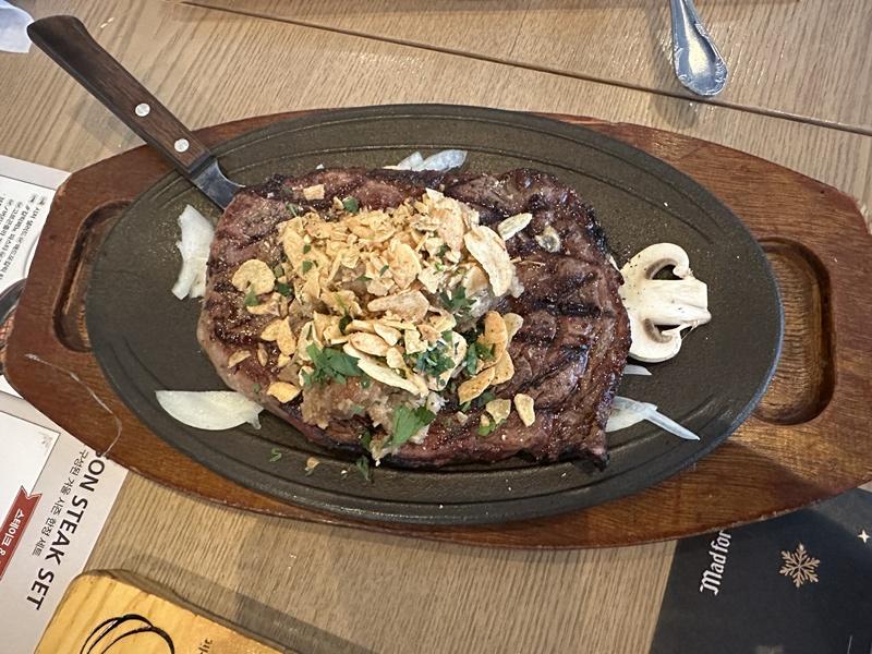 매드포갈릭은 아무래도 갈릭을 활용한 음식 컨셉이라, 스테이크는 갈릭 스테이크를 골랐고요.