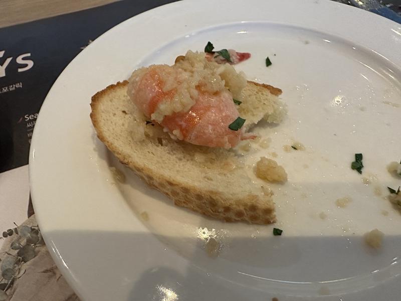한 가지 아쉬웠던 점은 새우가 껍질이 그대로 붙어 있었는데, 기름에 절여져 부드럽긴 했지만 그래도 조금 거슬렸었습니다.