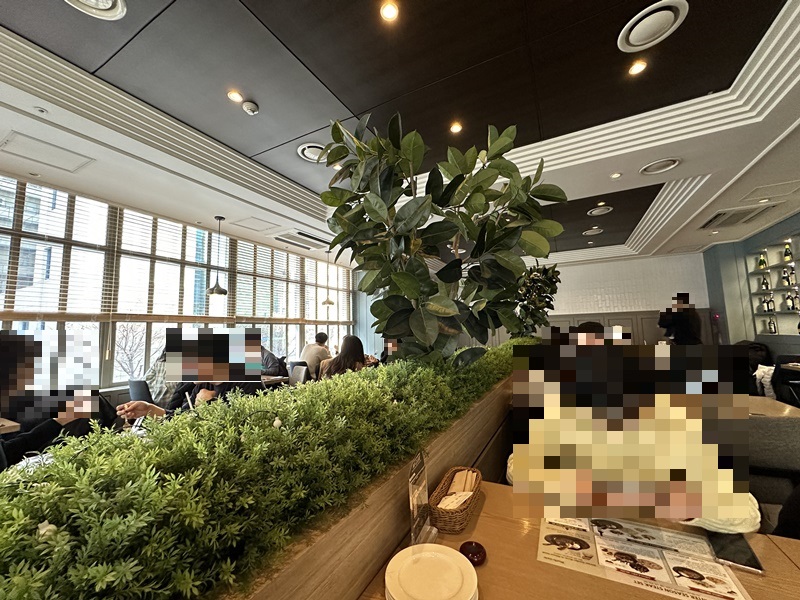 공간이 두 군대로 분리되어 있는데, 입구 쪽은 약간 어두워서 로맨틱한 분위기를, 창가 쪽 공간은 화사한 분위기를 띄고 있습니다.