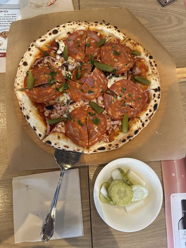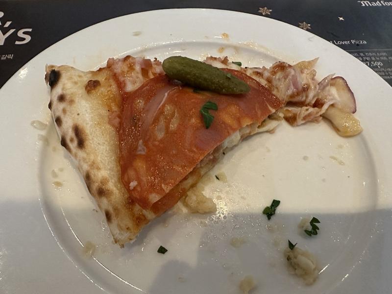 재료가 재료인지라 굉장히 헤비하고 살짝 느끼한 부분도 있는데, 이 피클이 가진 굉장히 상큼한 식감과 맛이 이 피자를 계속 먹게 만드네요.