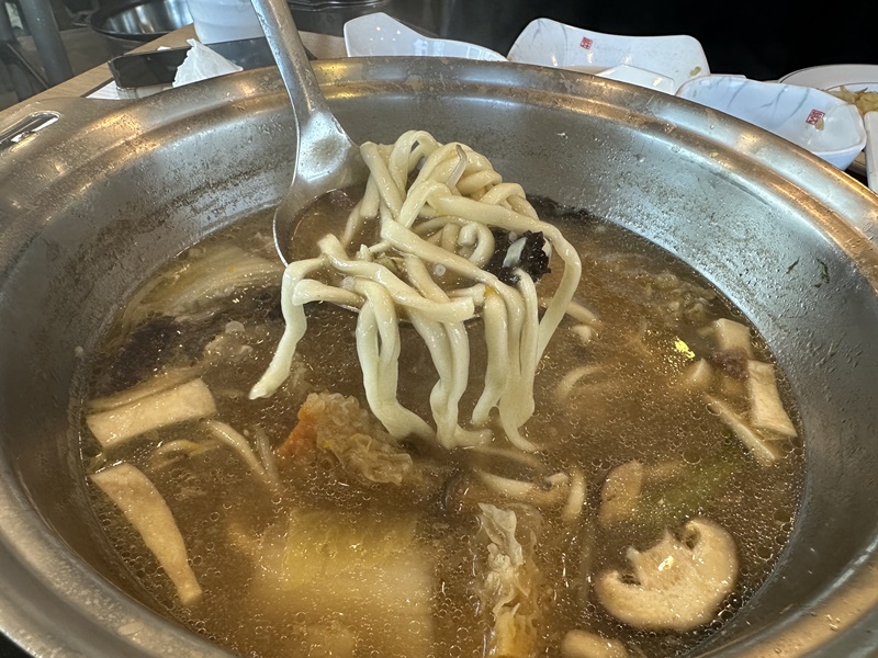 고기도 많고 버섯도 종류별로 푸짐하게 담겨 있고 밑에는 이북만두와 칼국수로 후식까지 해결할 수 있습니다.