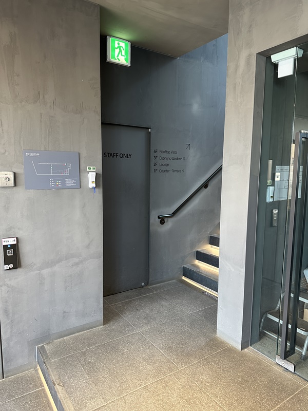 카운터 왼편에는 올라갈 수 있는 계단과 의외로 엘리베이터까지 설치가 되어 있어서 좋았습니다.