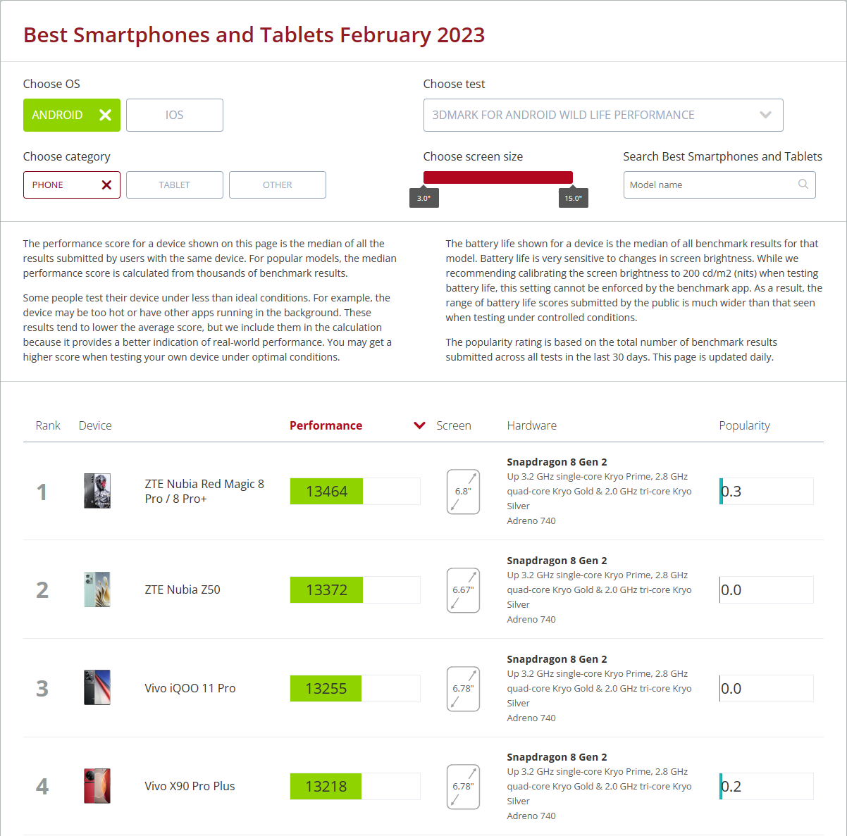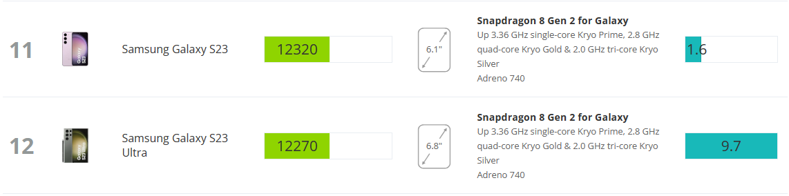 안드로이드 진영은 이번에 출시된 삼성 갤럭시 S23이 상위권을 차지하고 있고요.