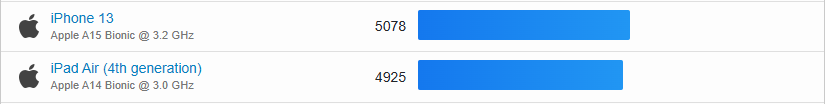 멀티 코어에서는 차이가 더 두드러지는 줄 알았지만 IOS는 패드류가 상위권을 차지하고 있네요.