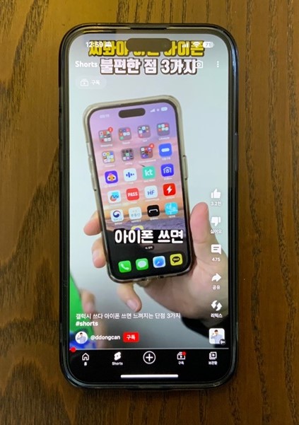 유튜브나 넷플릭스, 그리고 웨이브에서 동영상을 보는 데는 크게 문제가 없지만 유튜브 숏츠, 게임 등에서는 다이나믹 아일랜드 때문에 해당 부위가 가려지는 현상이 발생합니다.