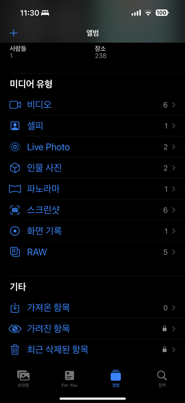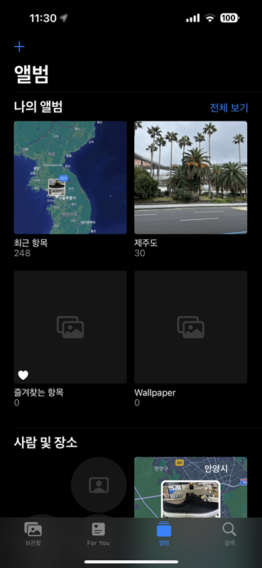 아이폰은 따로 특정 주제의 사진만 볼 수 있는 '앨범'이라는 기능을 활용합니다.
