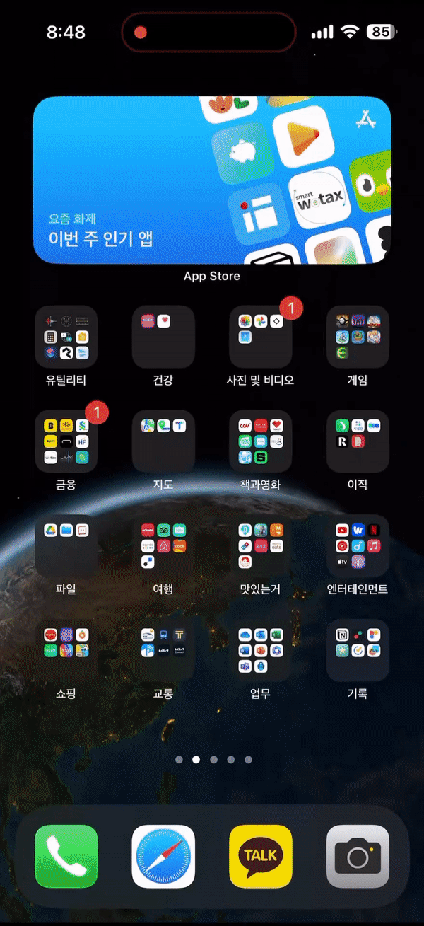 실제로는 저렇게 가려지는데 화면 녹화나 스샷으로 찍으면 다이나믹 아일랜드 부분이 제대로 나오는 건 괘씸하기까지 하네요.