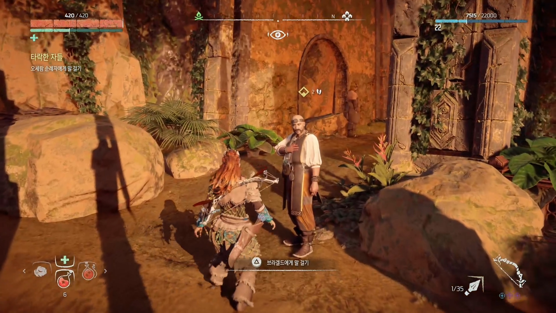 글린트 호크를 모두 처치하고 언덕 정상까지 올라가면 카믹이라는 바누크 부족을 만날 수 있습니다.
