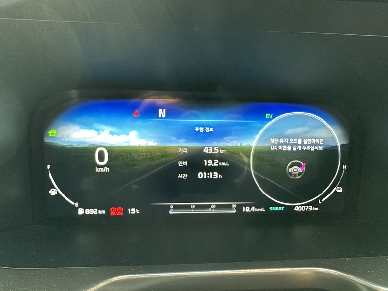 계기판 기어 역시 N단으로 변경되는 걸 확인하실 수 있습니다.