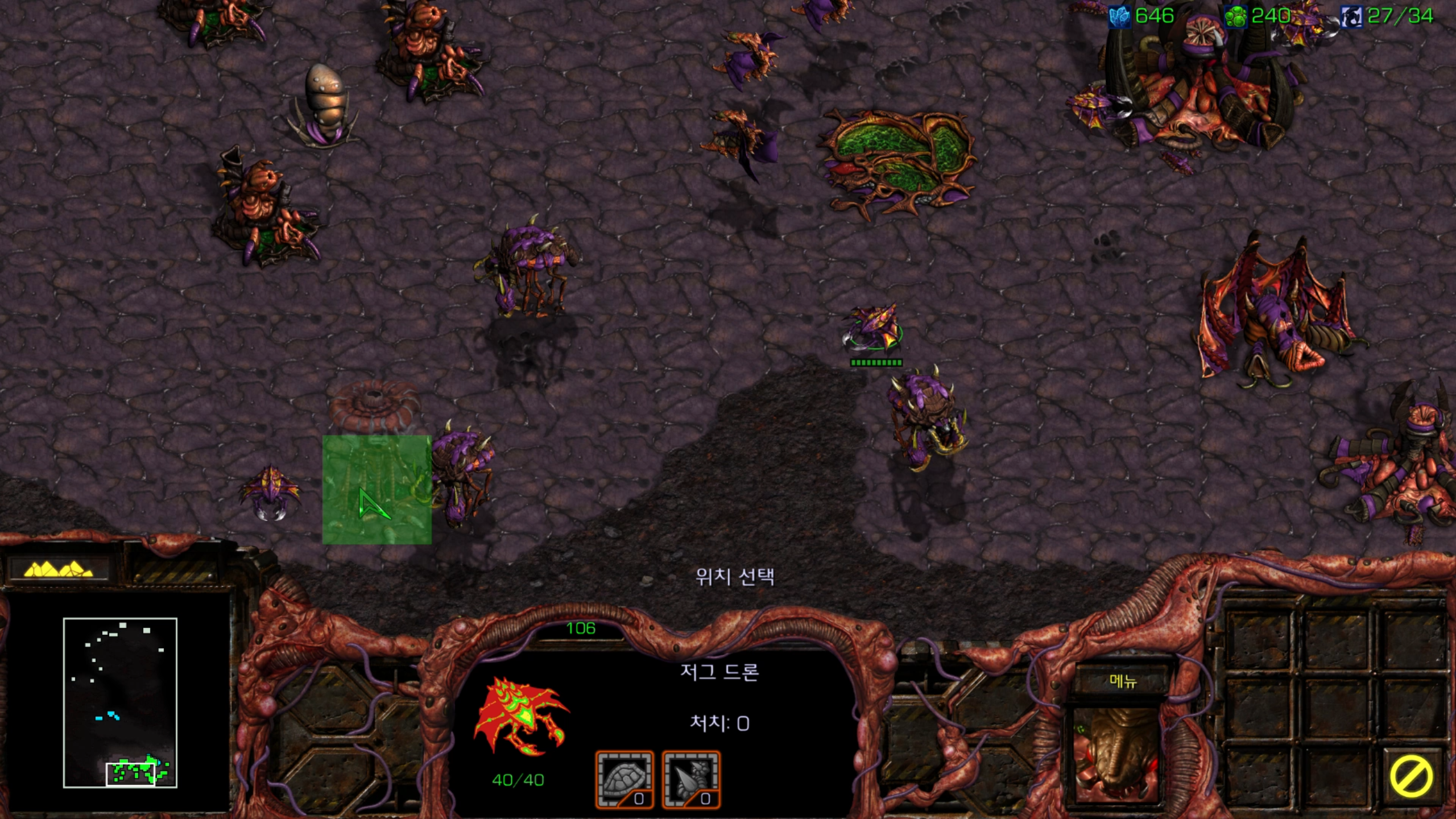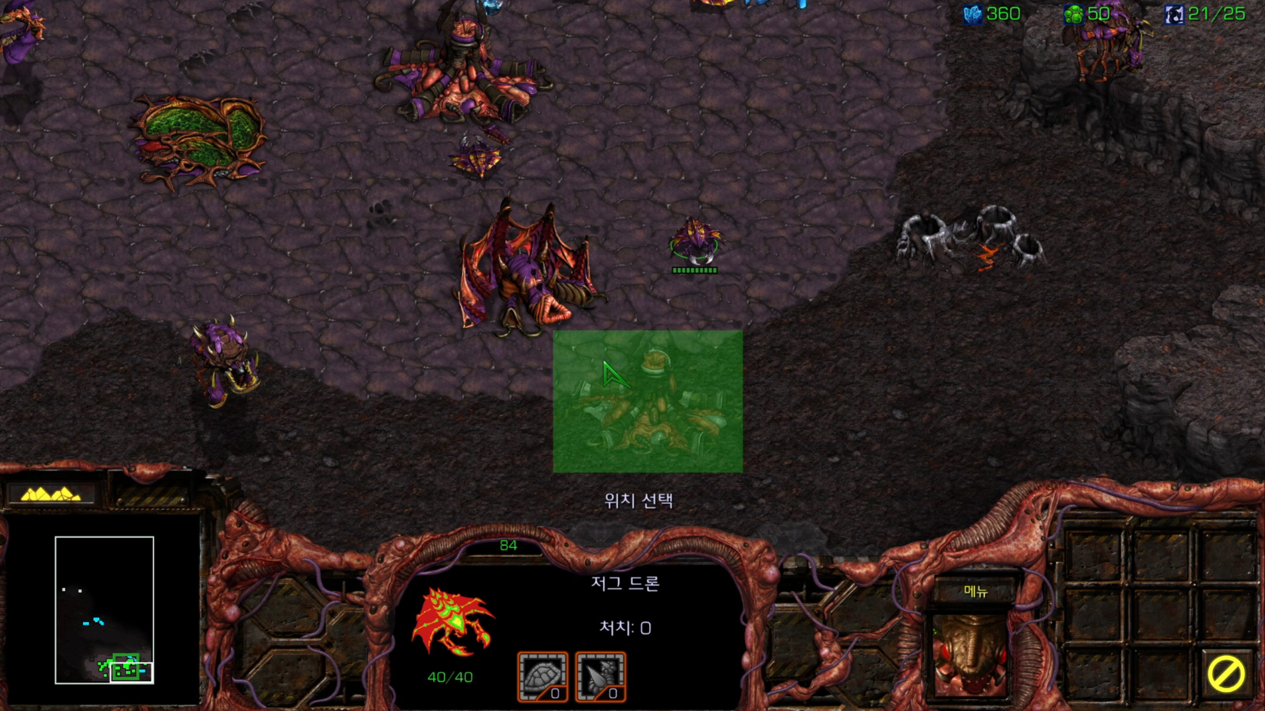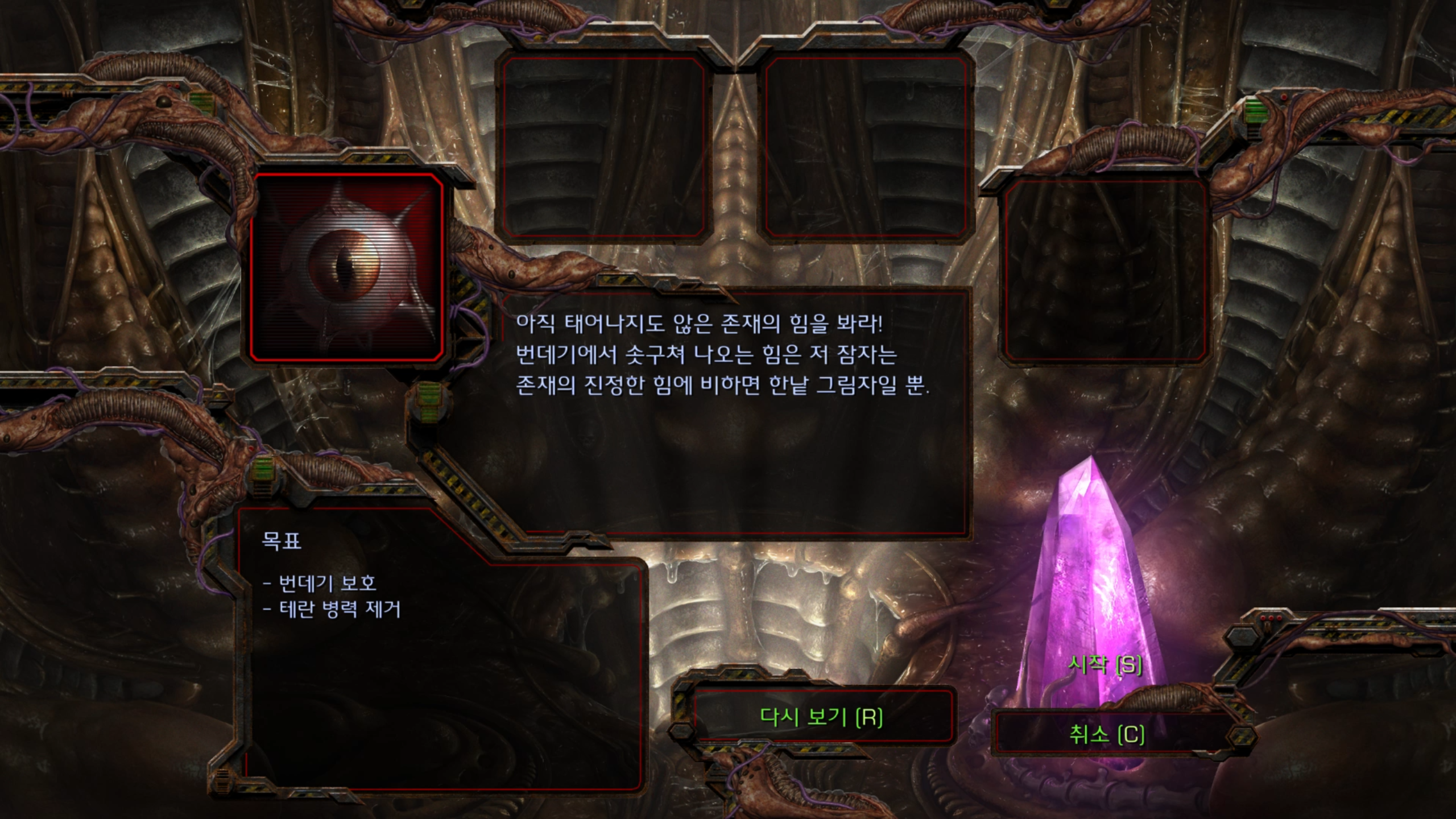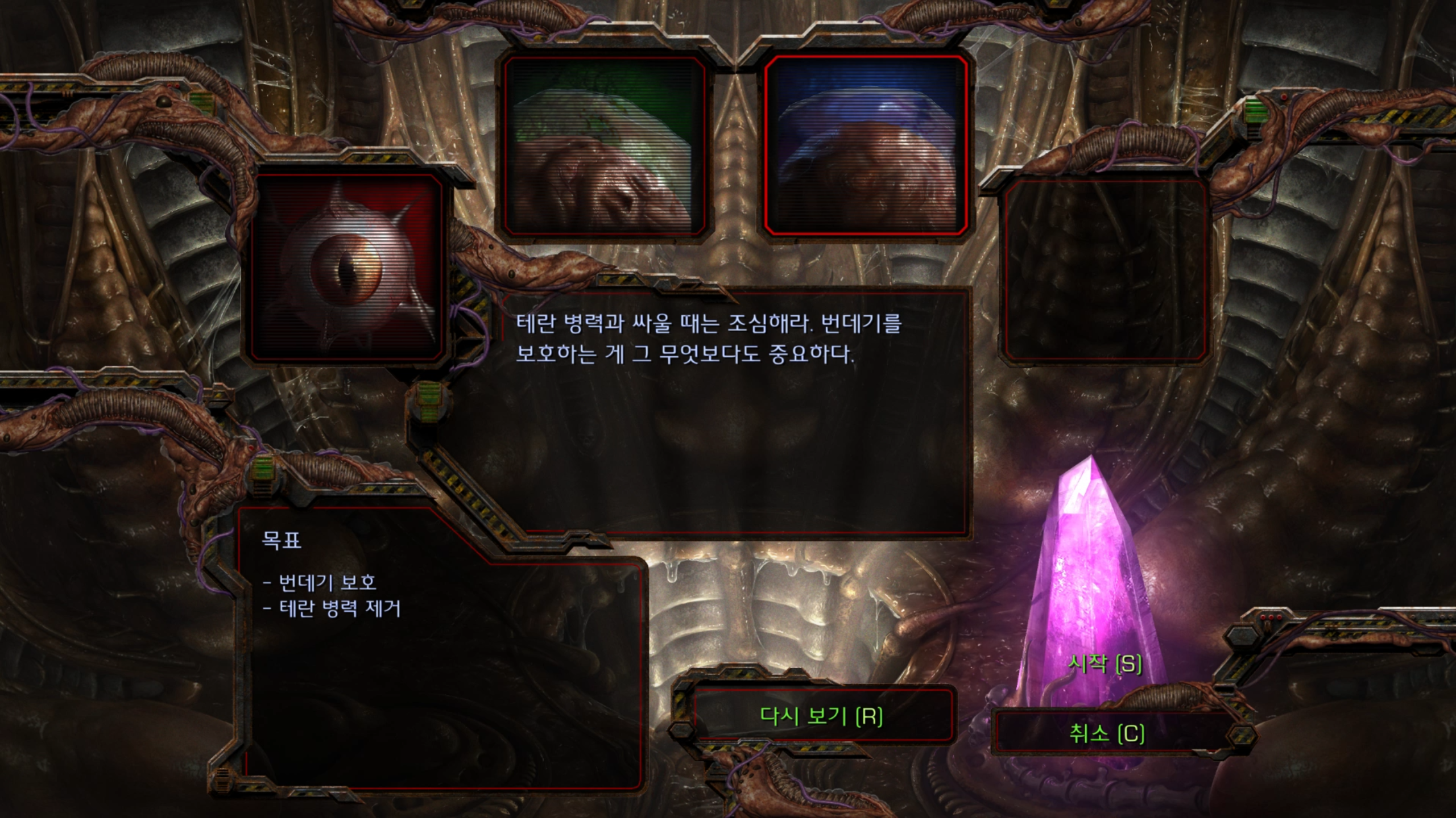 테란을 제거하면서 번데기도 지켜야 하는 이번 미션입니다. 역시나 오늘도 누가 누군지 분간이 안되네요.
