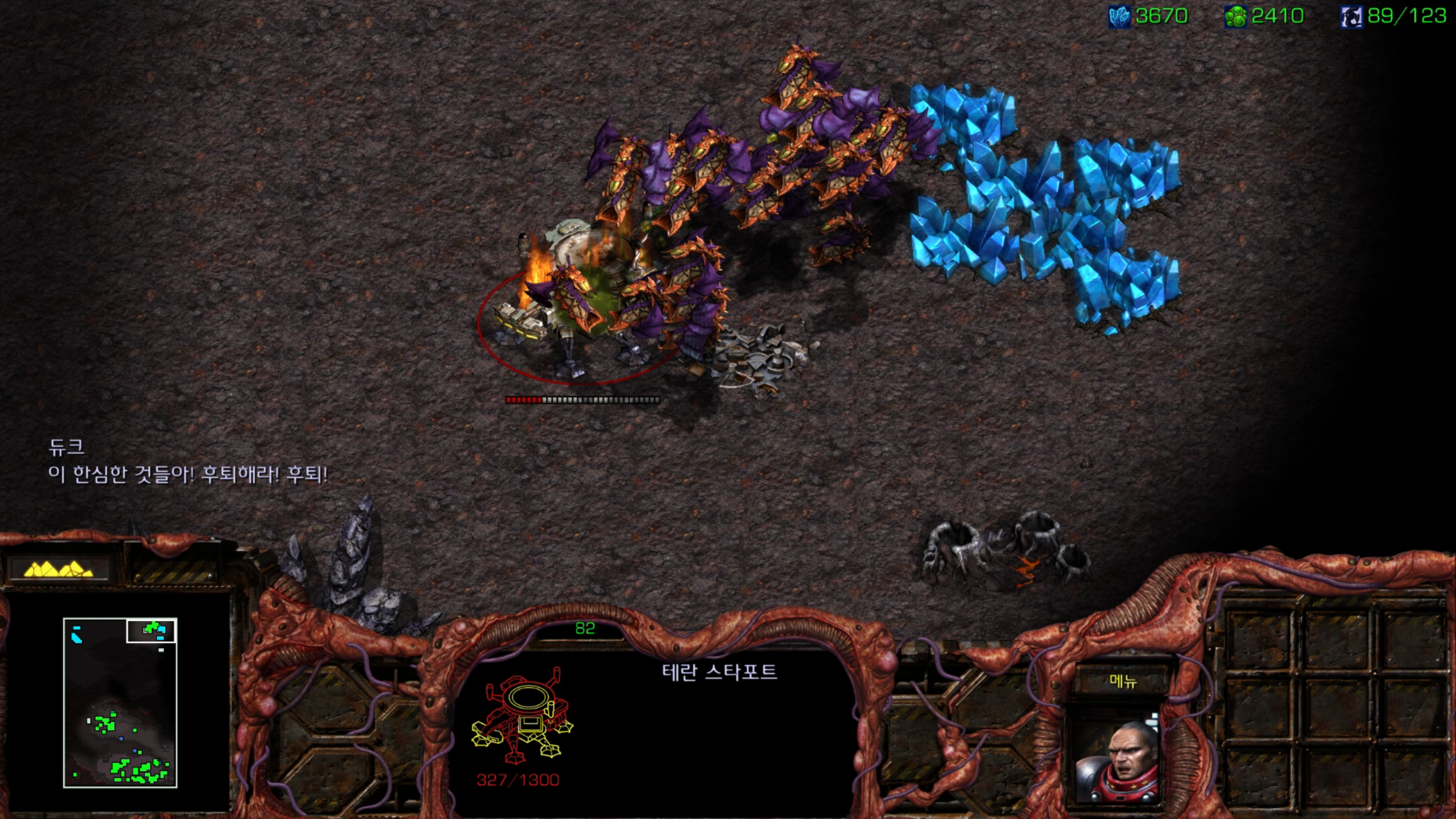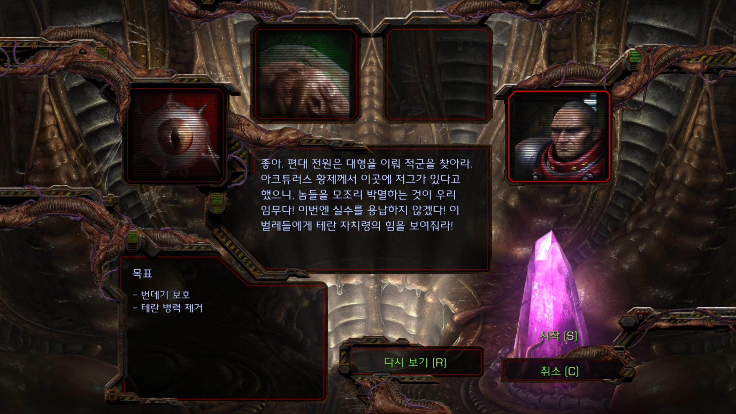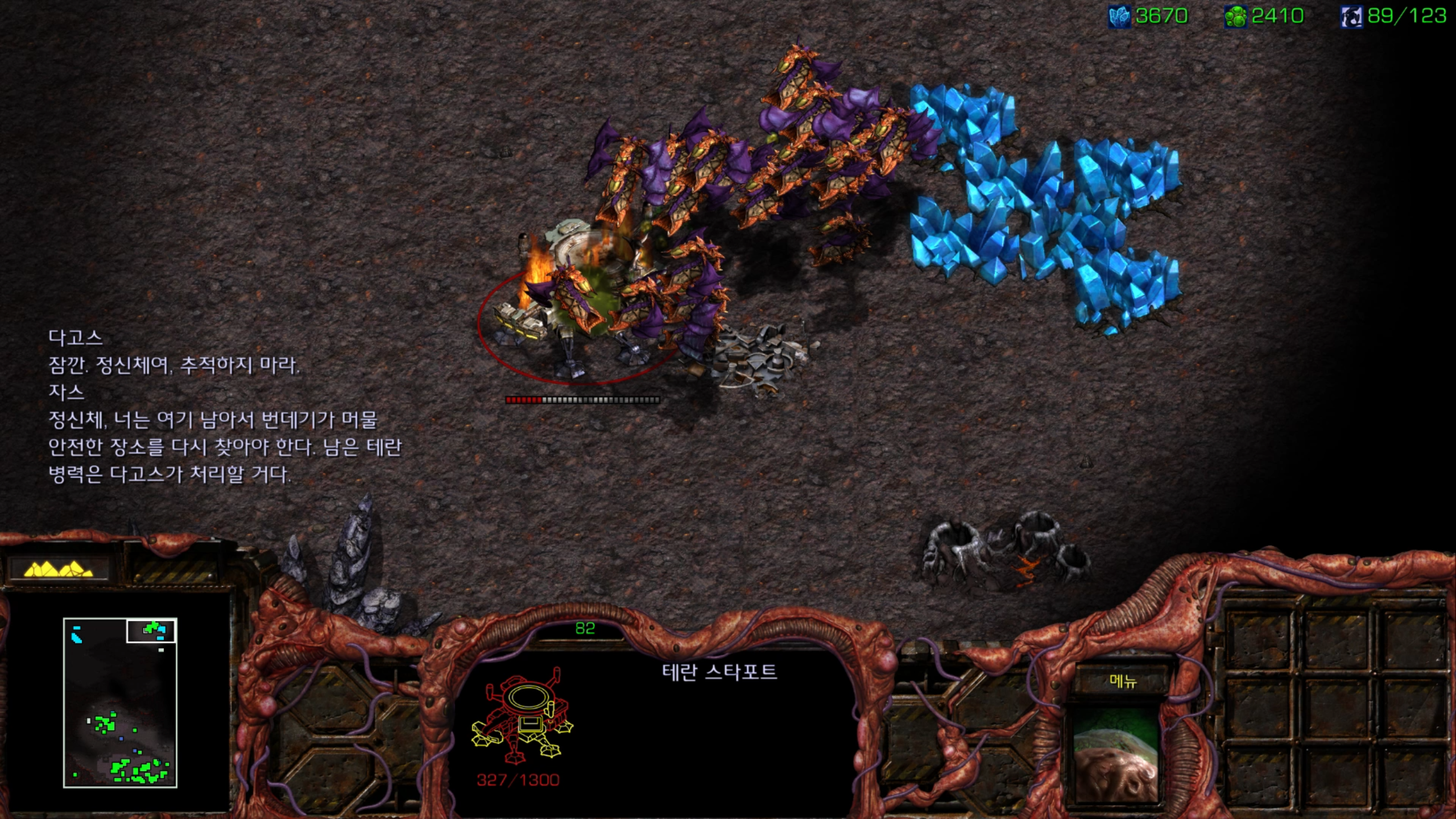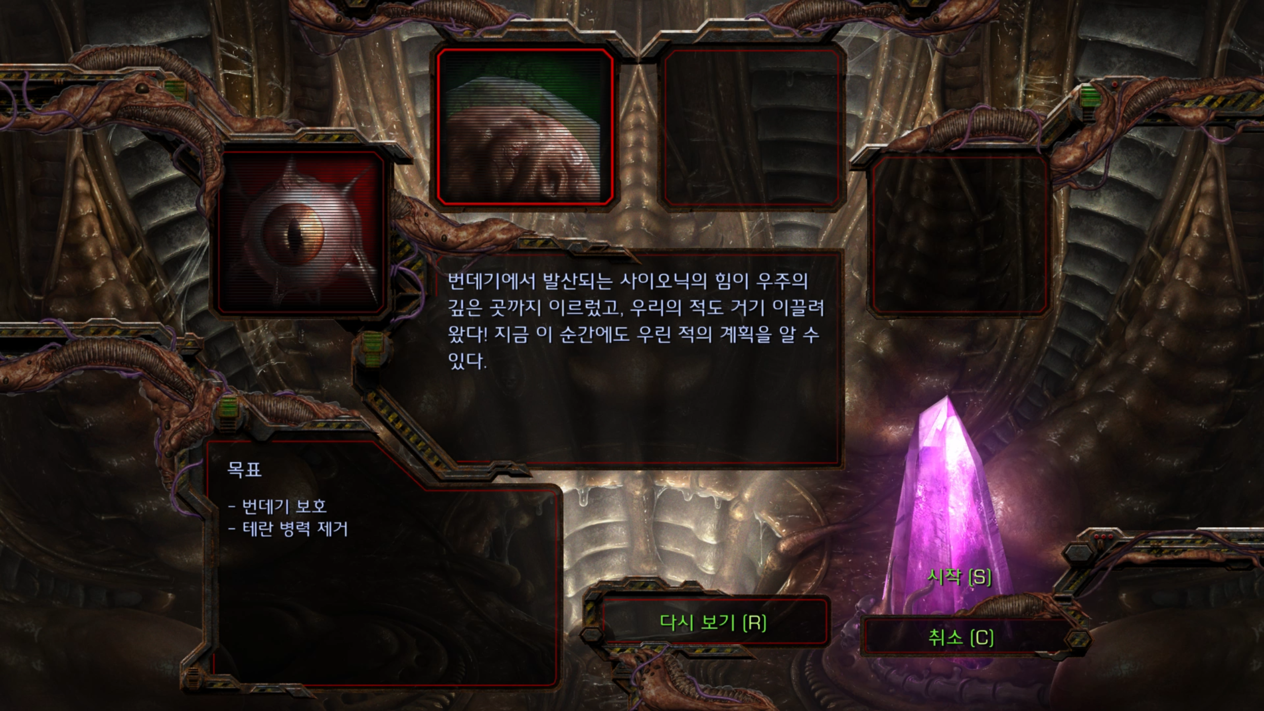 테란을 제거하면서 번데기도 지켜야 하는 이번 미션입니다. 역시나 오늘도 누가 누군지 분간이 안되네요.