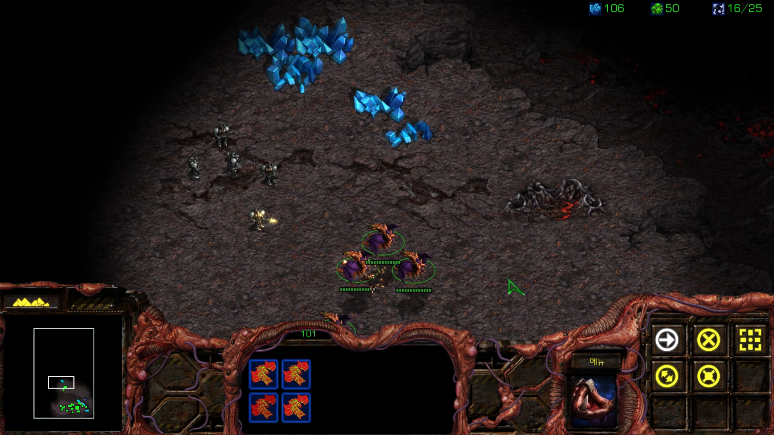 시작하자마자 뮤탈이 4기나 있어서 초반 정찰이 매우 수월합니다.
