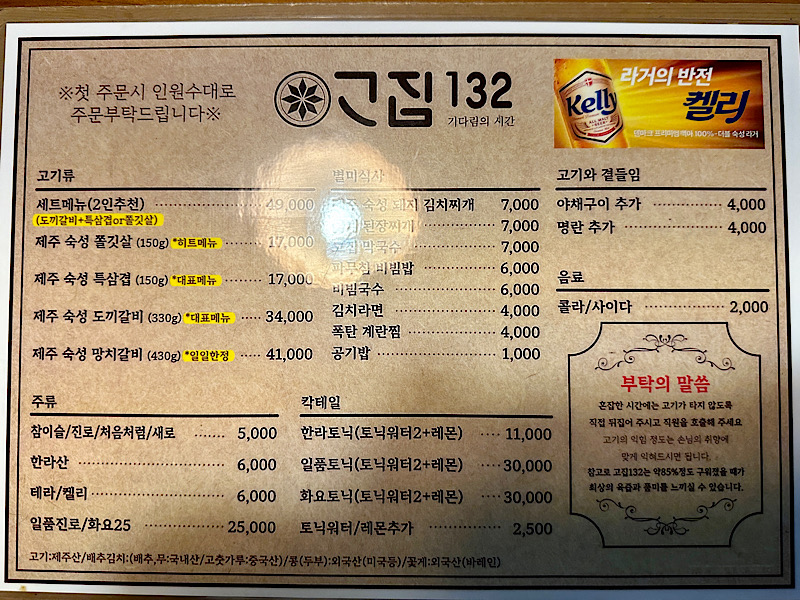 일반 고기집에서는 볼 수 없는 메뉴들이 많이 보입니다.