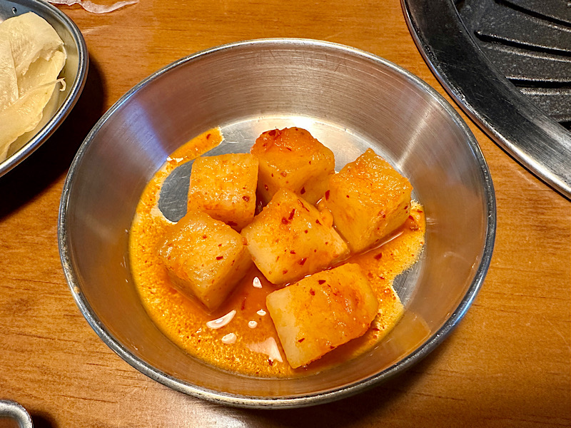 깍두기 자체를 별로 안 좋아하고 다른 곁들임 반찬들이 많아서 먹어보지도 않았습니다;;