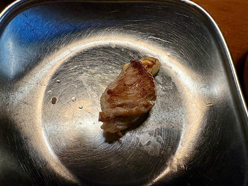 개인적으로는 삼겹살이 더 맛있었는데 비계가 한 번에 먹기 힘들 정도로 크고 살코기와 크기 차이가 심하다 보니 살코기 맛이 죽는 느낌이었어요.