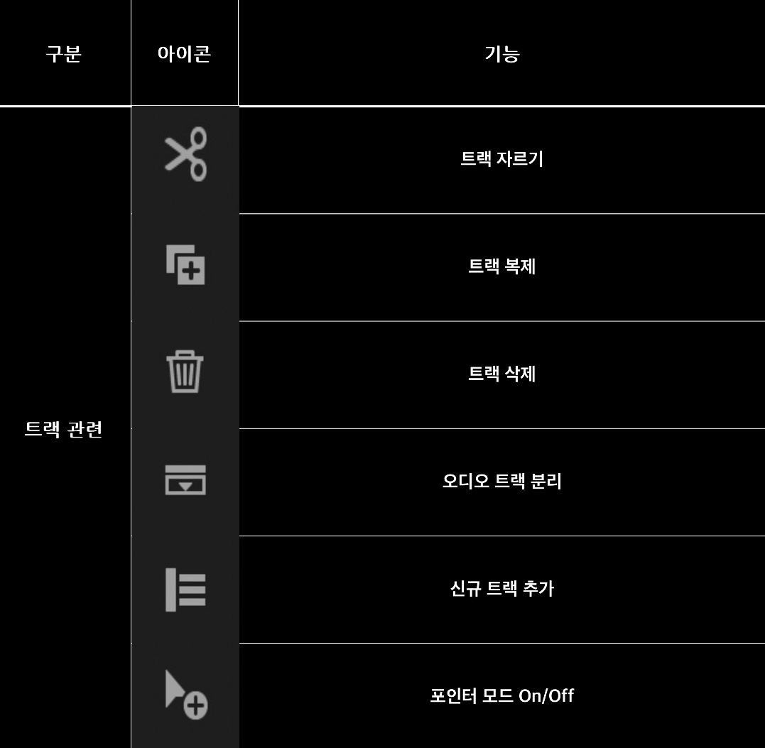 제가 가장 많이 쓰는 기능은 바로 이 트랙 관련 기능들입니다.