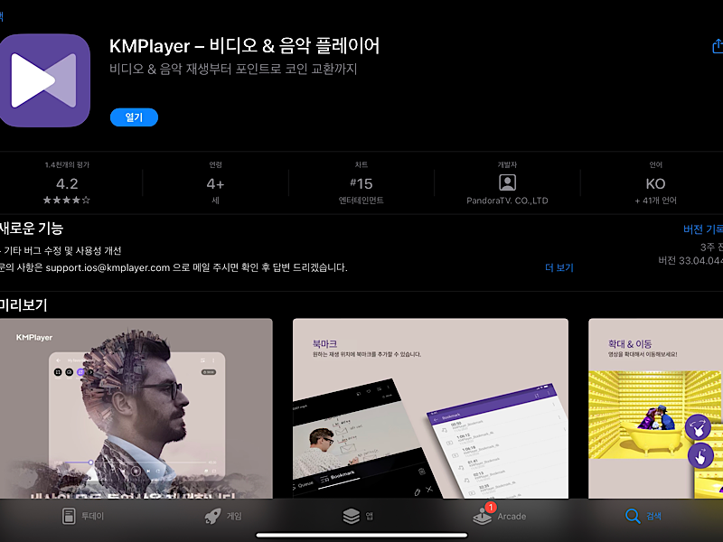 파일 이동이 완료됐다면, 컴퓨터와의 연결을 해제한 후, 아이패드에서 KM플레이어를 실행해 봅시다.