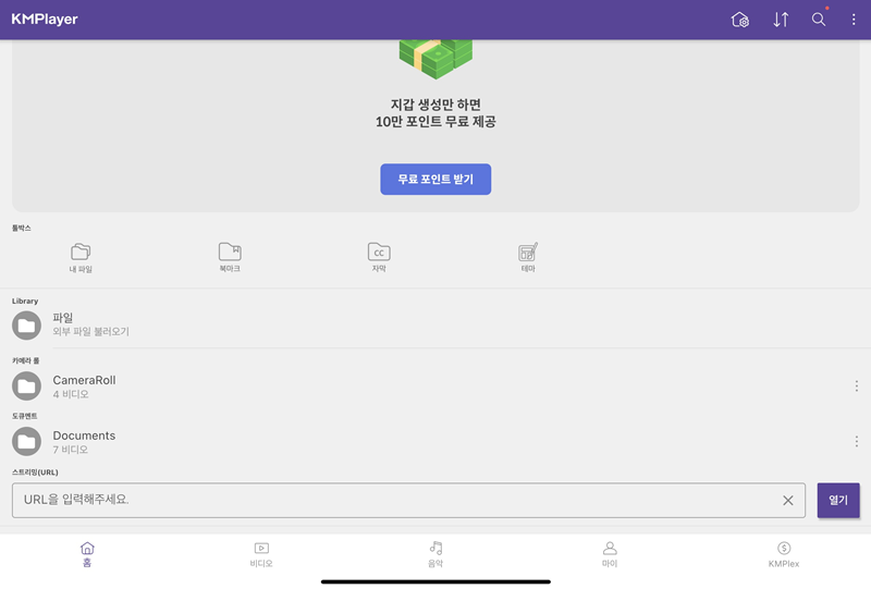 나의 iPad를 보시면 KM플레이어 폴더가 있습니다.
