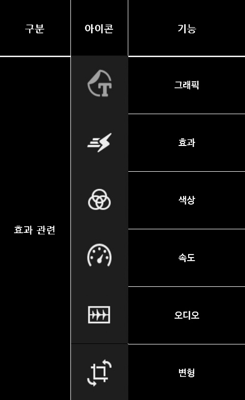 영상 편집의 꽃이죠. 효과 관련 기능들입니다.