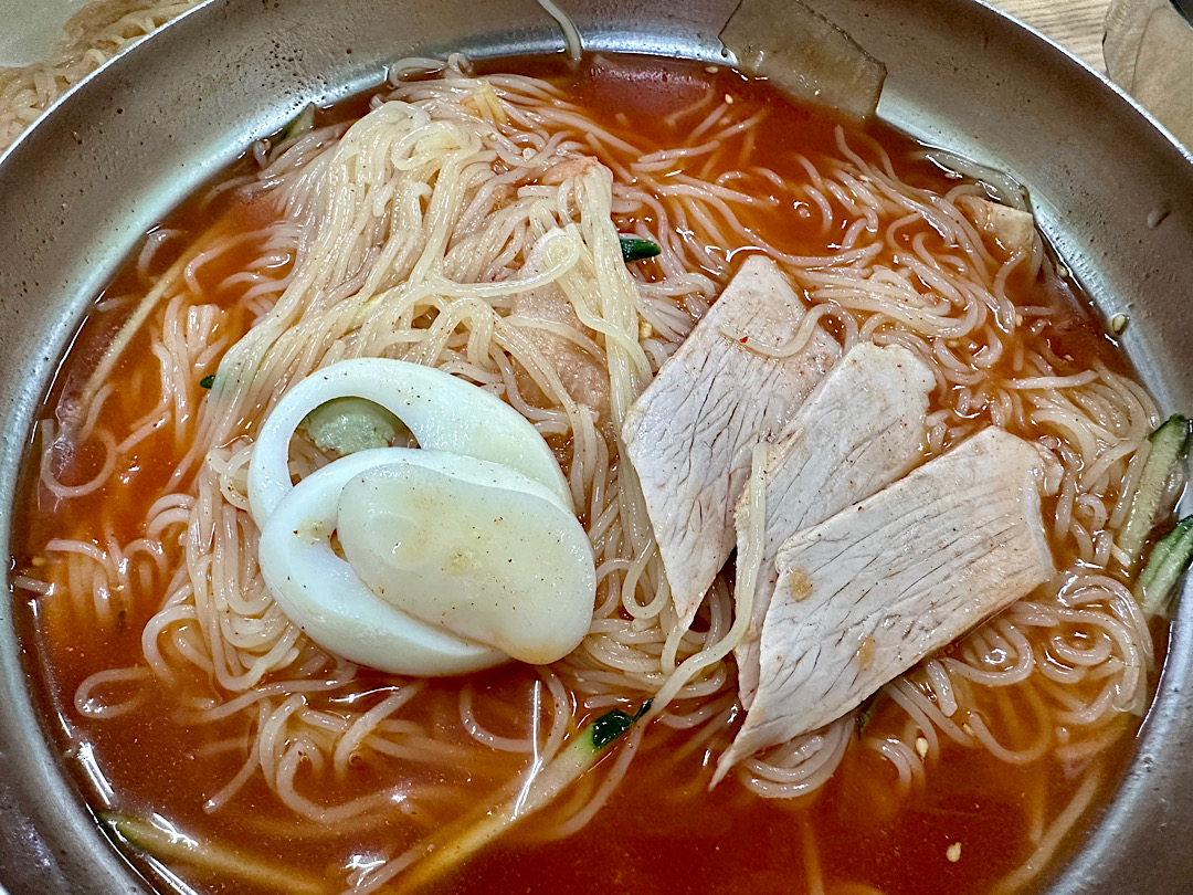 면발 끊기가 힘들어서 냉면류는 별로 안 좋아하는데, 밀면은 국수 비스무리한 면발이라 맛있게 잘 먹었습니다.