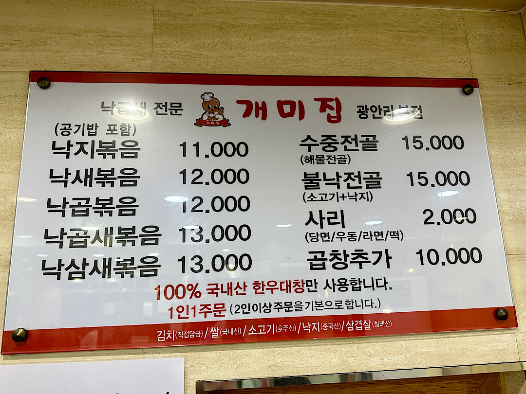 저는 곱창을 못 먹기 때문에 낙삼새 2인을 주문했습니다.