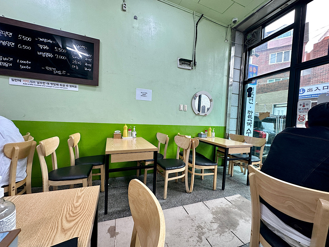부산은 밀면이라고 해서 밀면집에 왔어요.