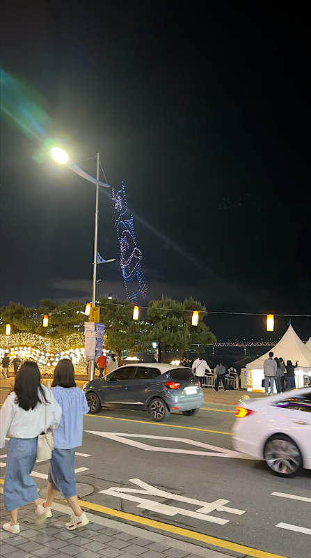 그래도 축제의 하이라이트인 드론 쇼는 잘 보이는 편이라서 드론쇼 구경하고, 지나다니는 사람들 구경하는 재미가 있었습니다.
