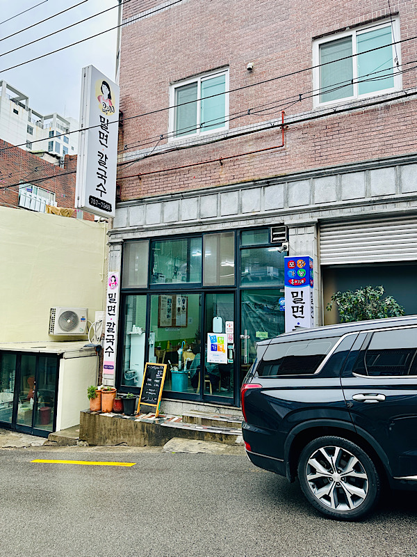 체크인 전에 호텔에 도착했기 때문에 차만 두고 점심을 먹으러 옥이네 밀면 칼국수라는 식당에 왔습니다.