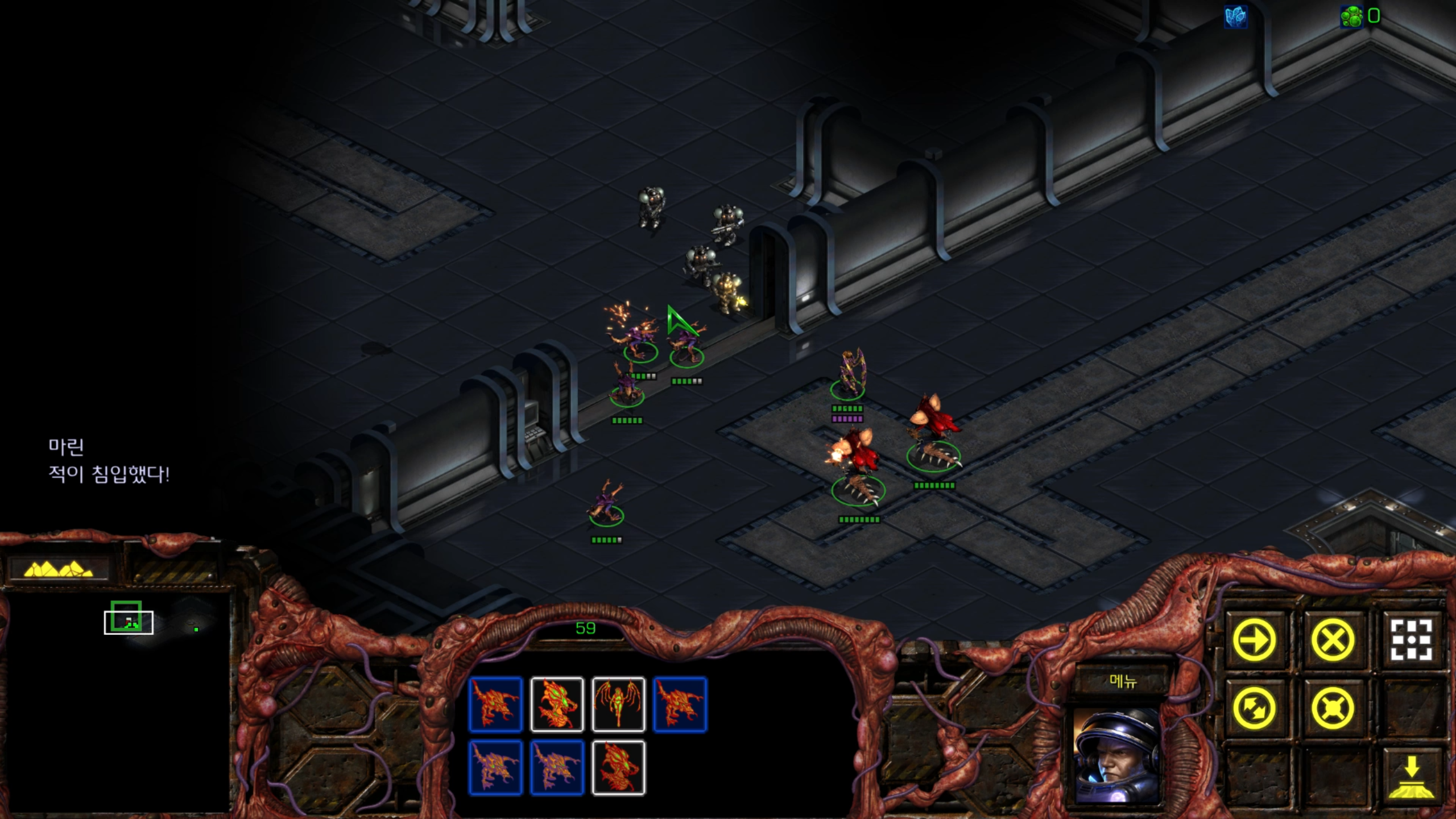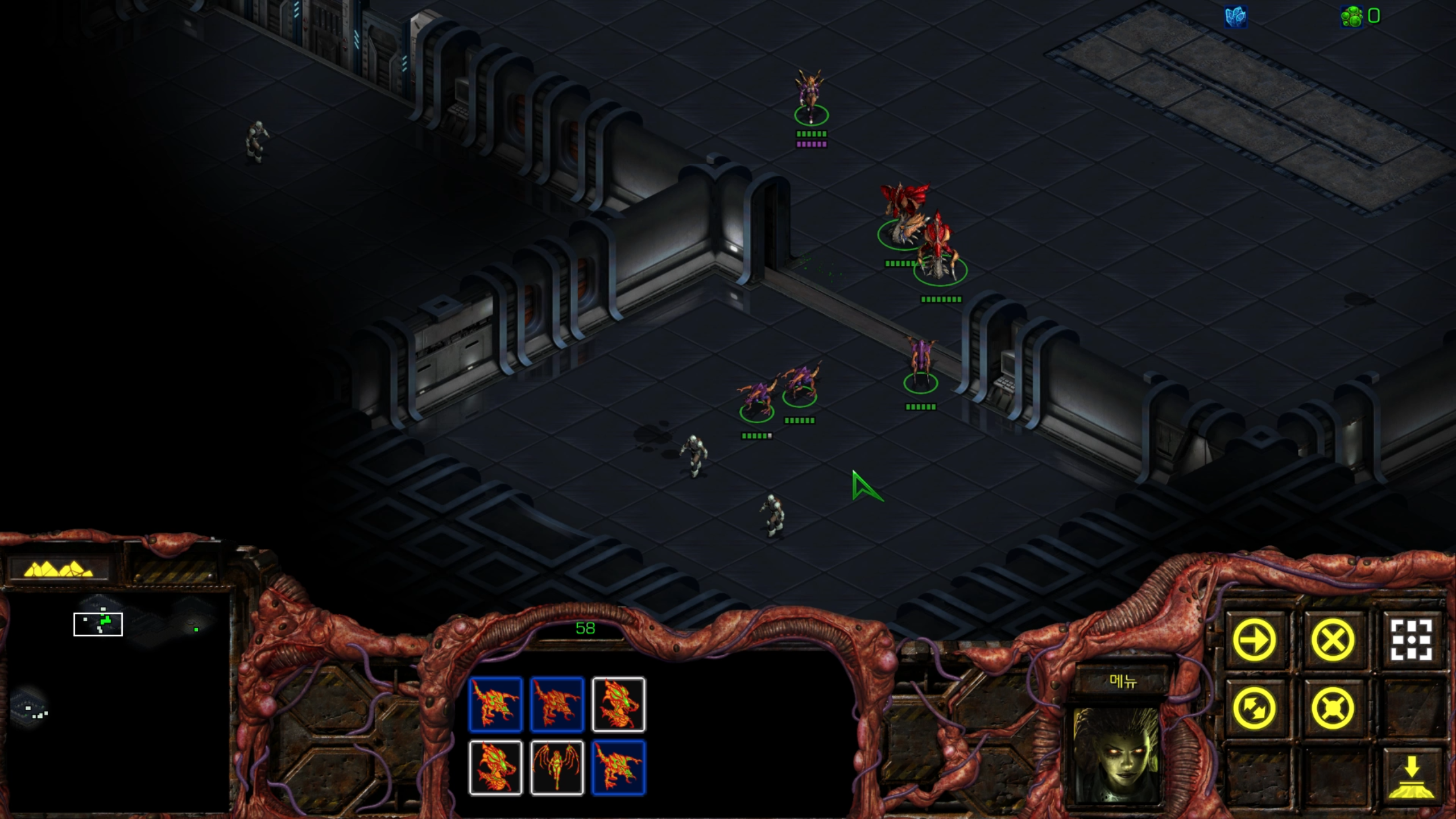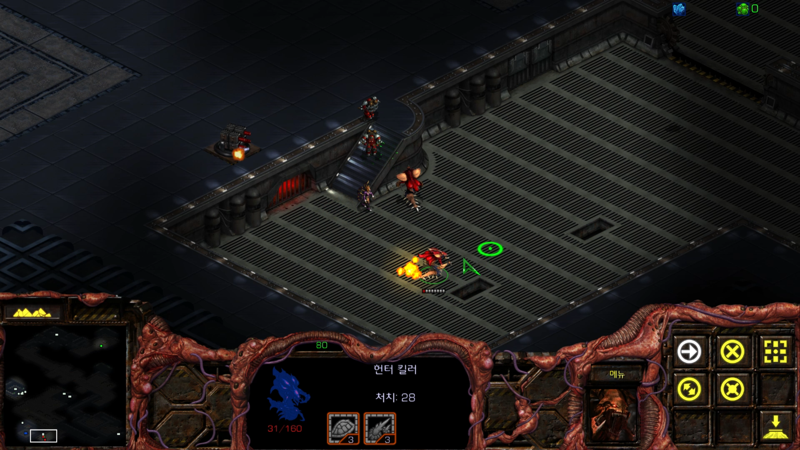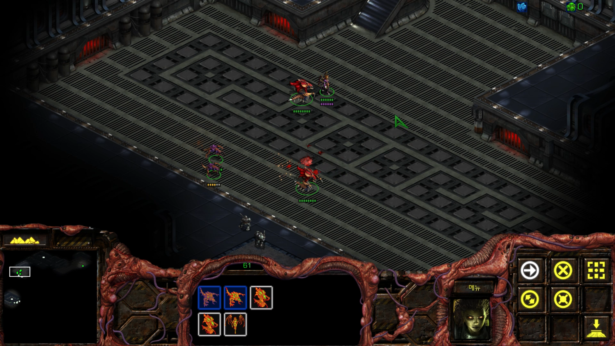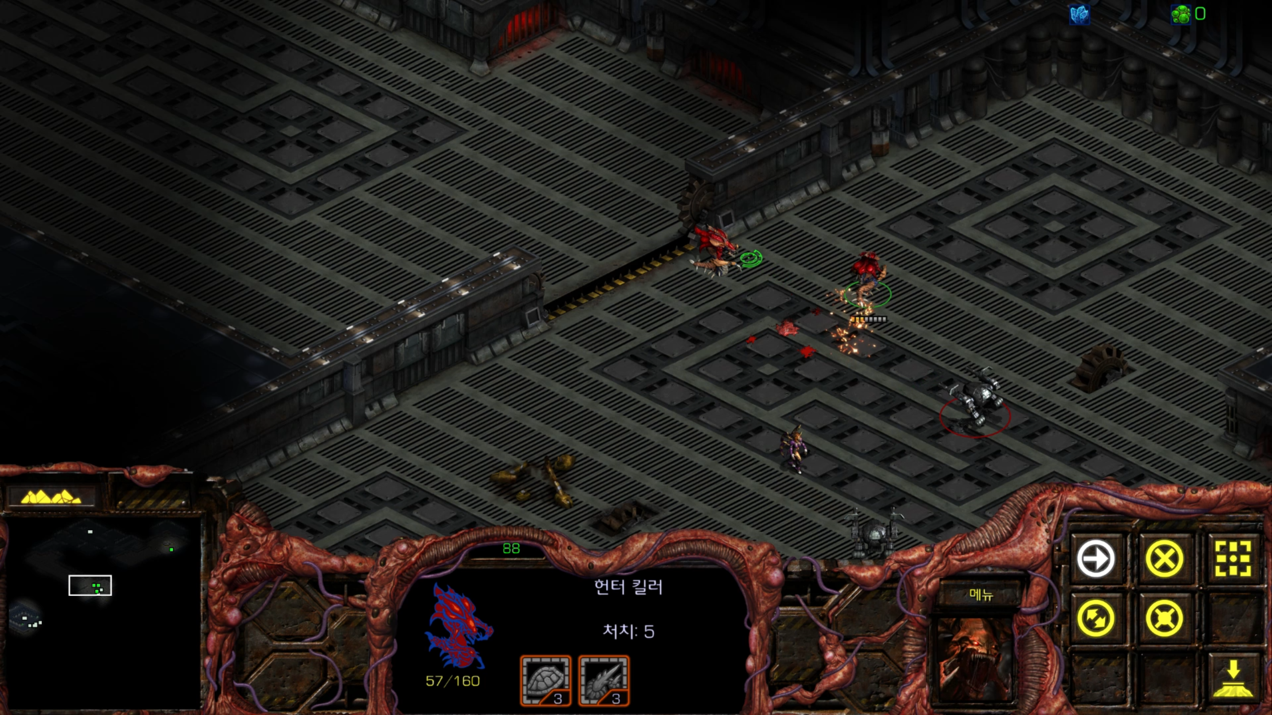 아래에는 저글링 네 마리가 있습니다. 헌터킬러를 최대한 보호하는 방향으로 활용해야겠습니다.