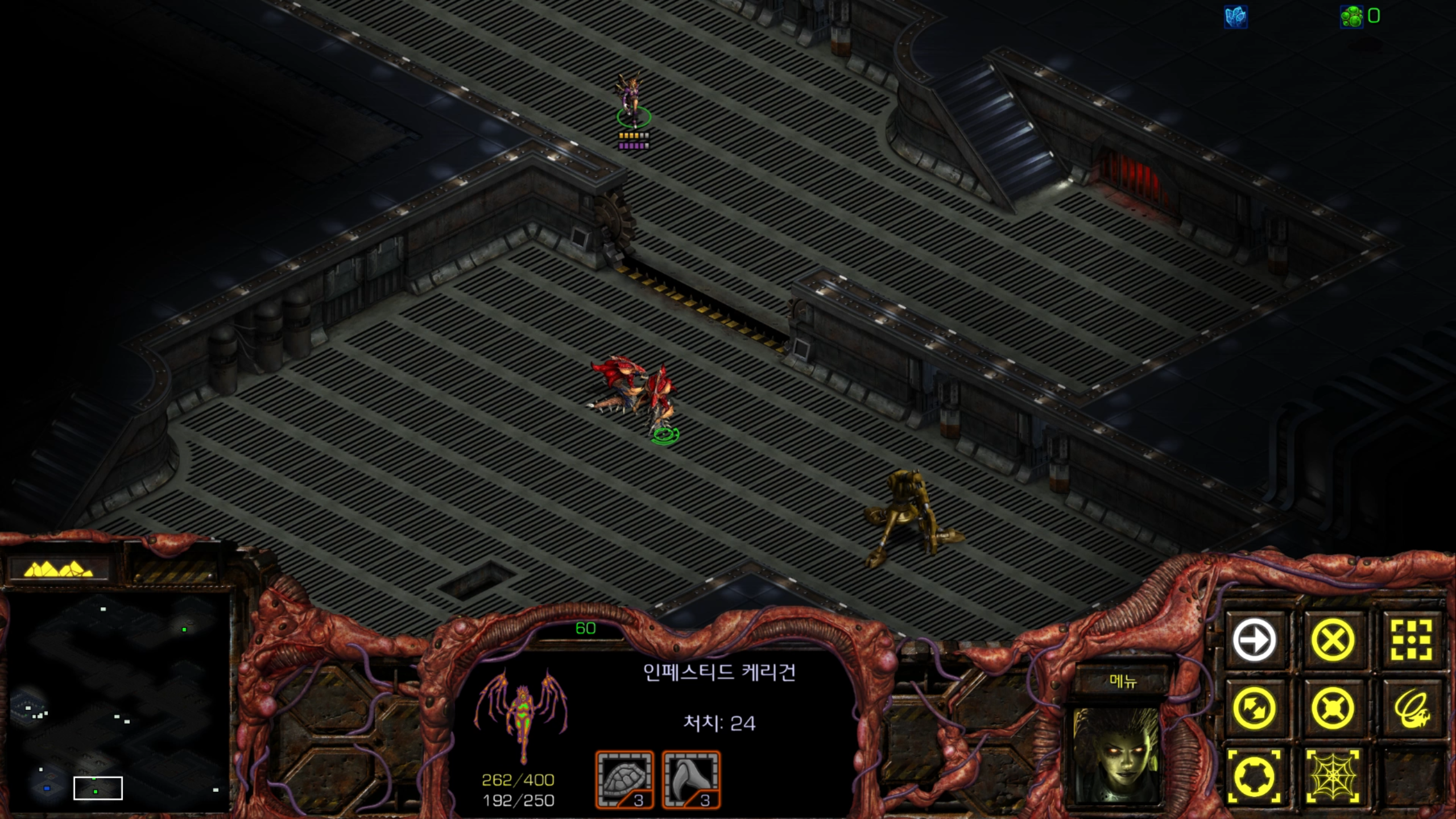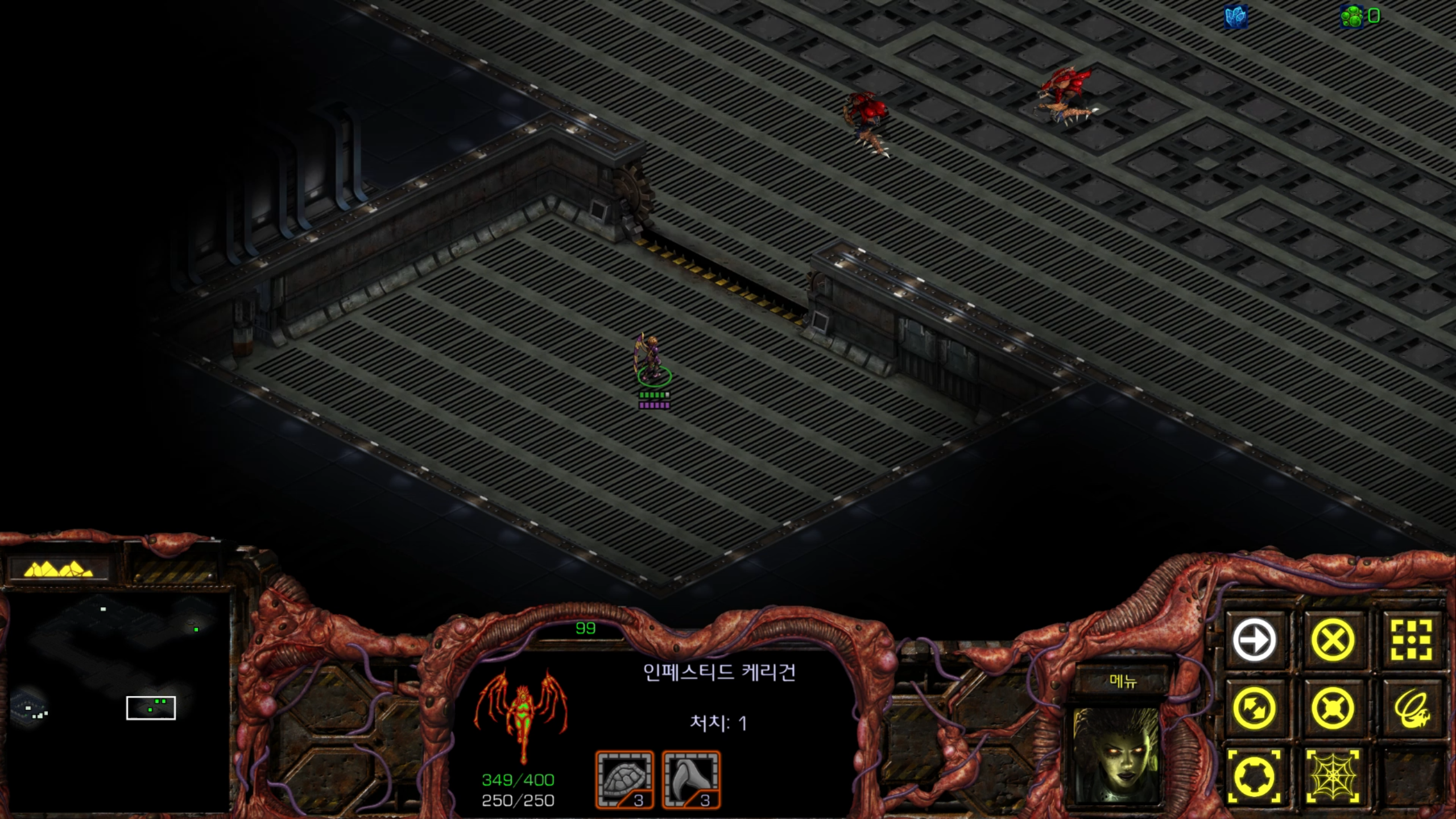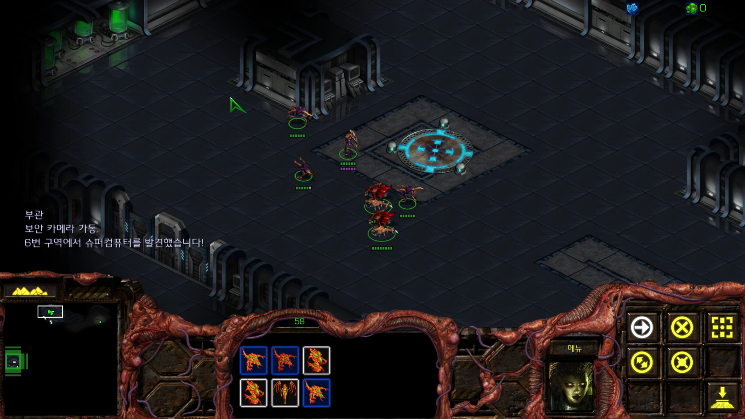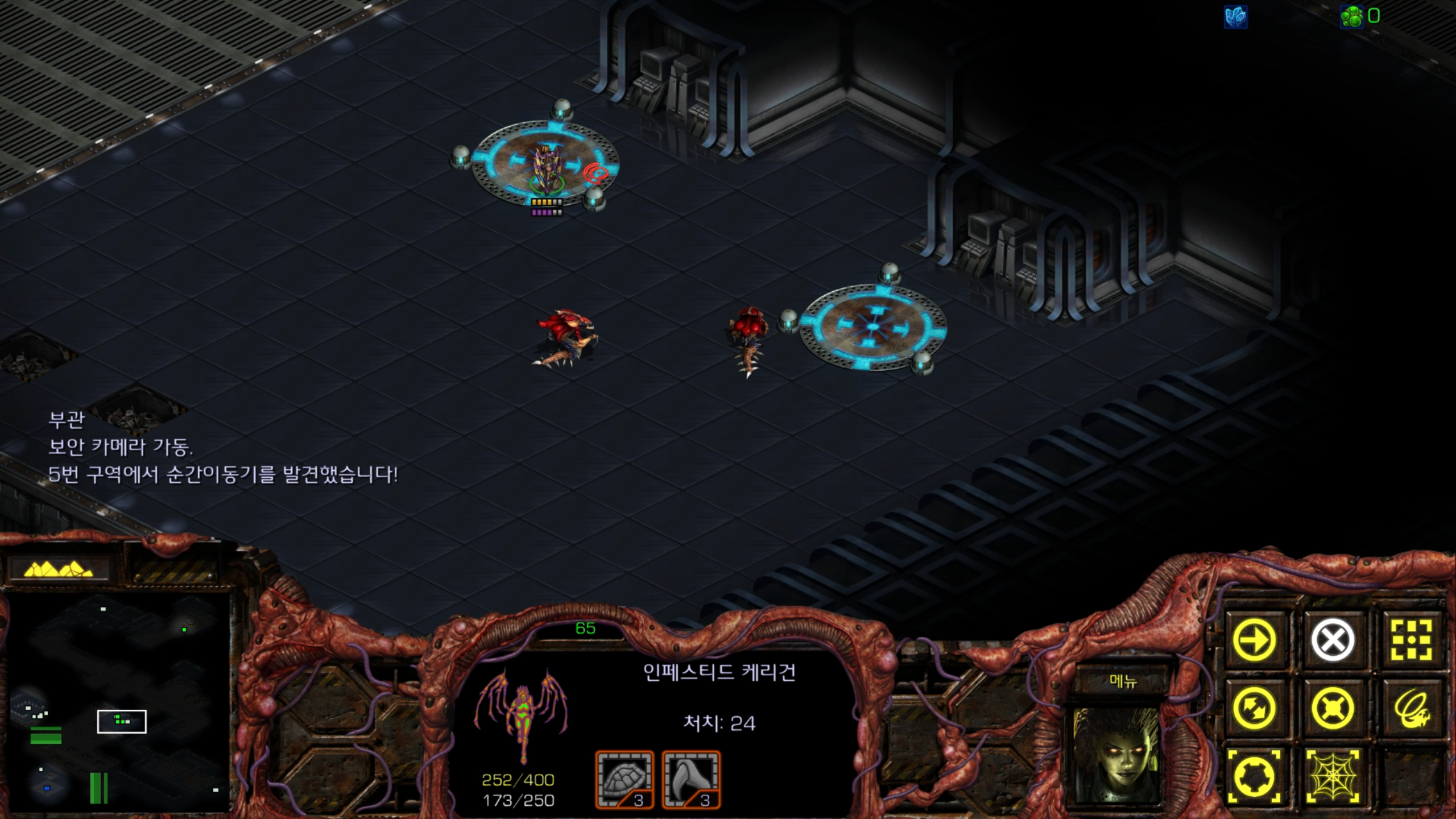아래에는 저글링 네 마리가 있습니다. 헌터킬러를 최대한 보호하는 방향으로 활용해야겠습니다.