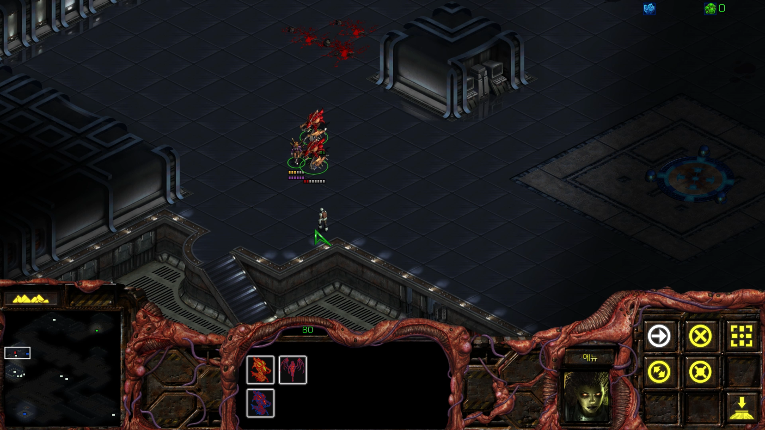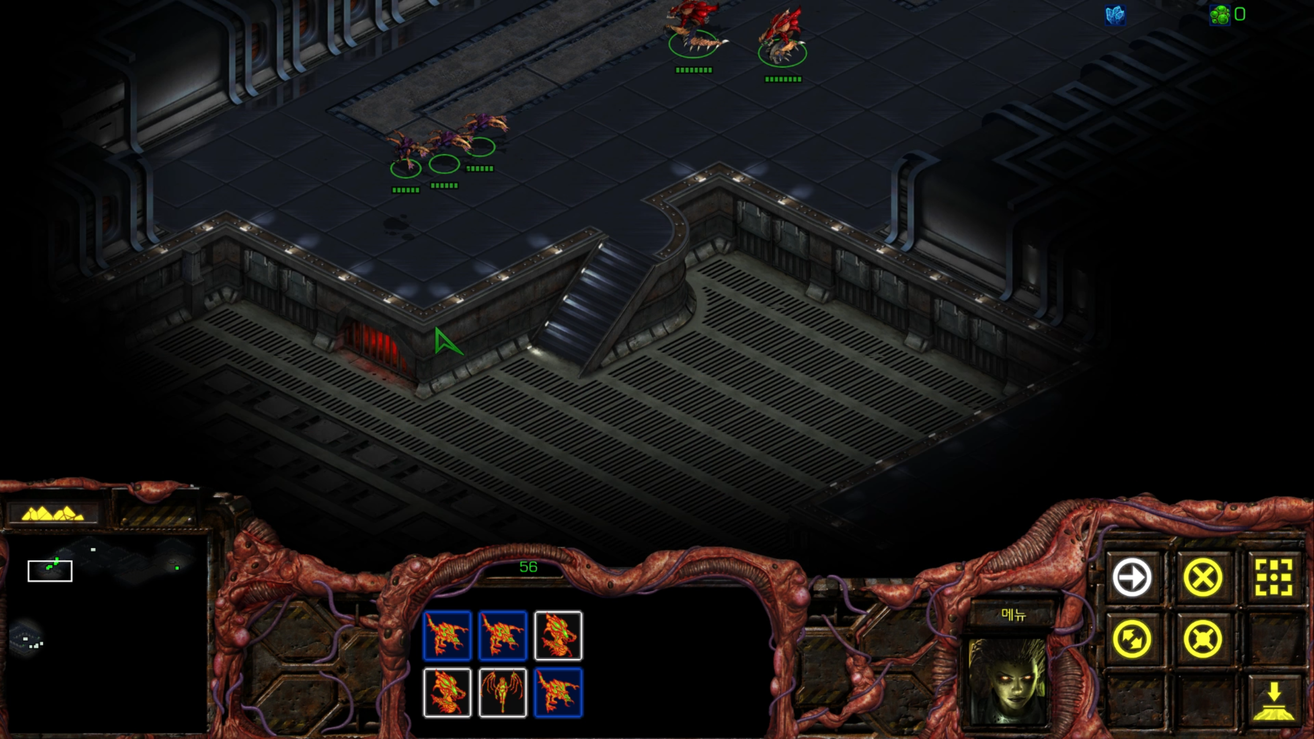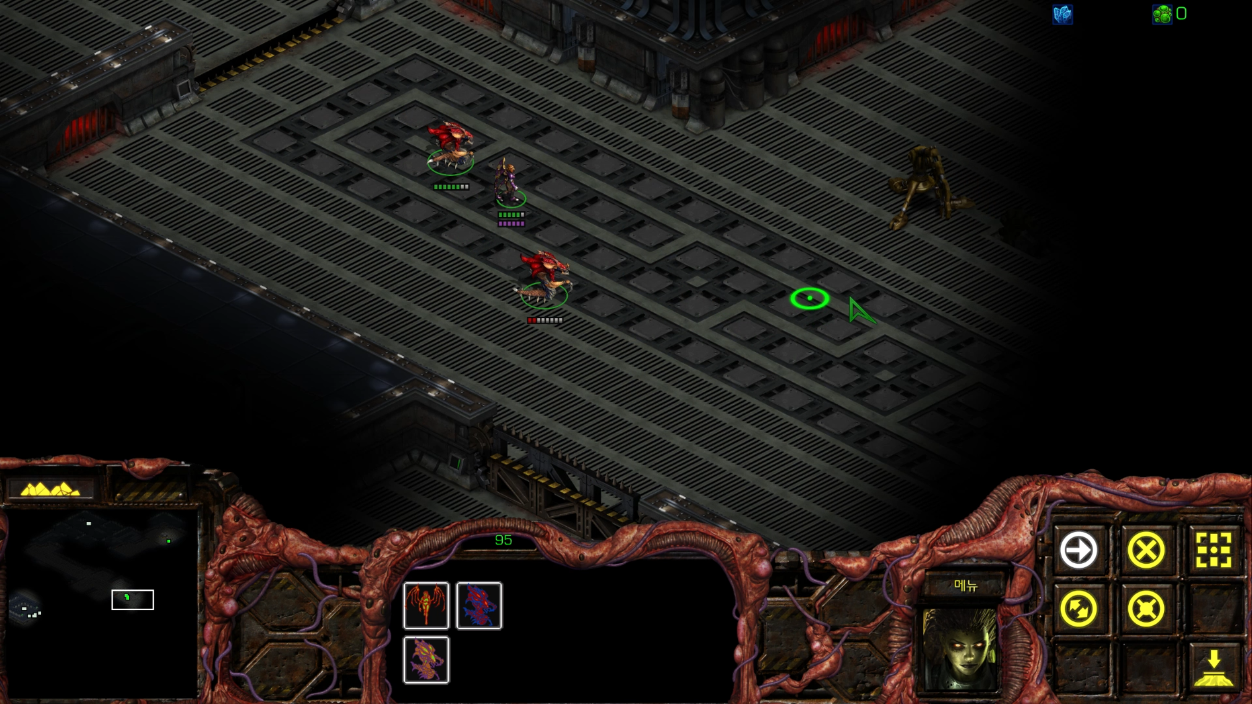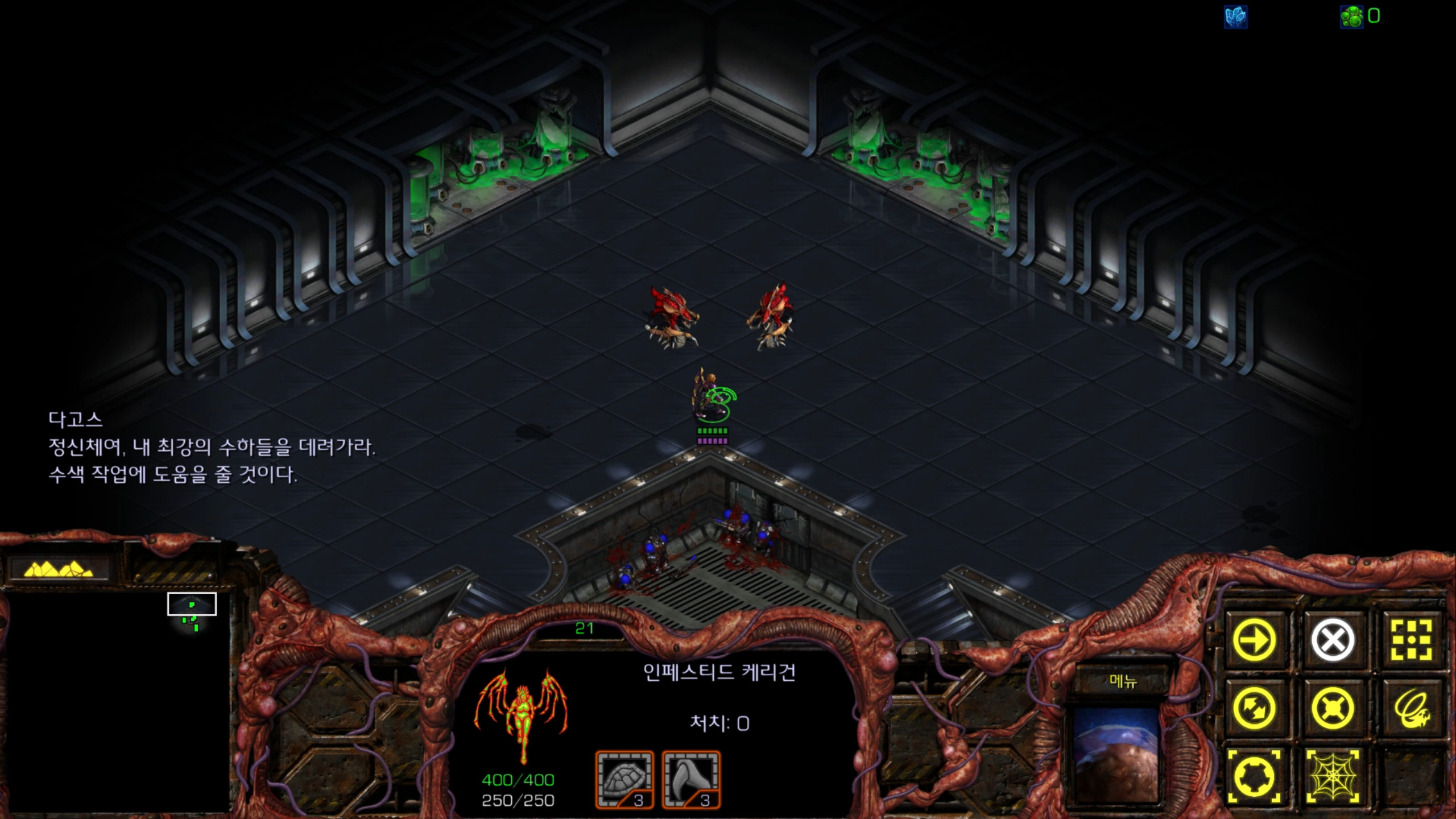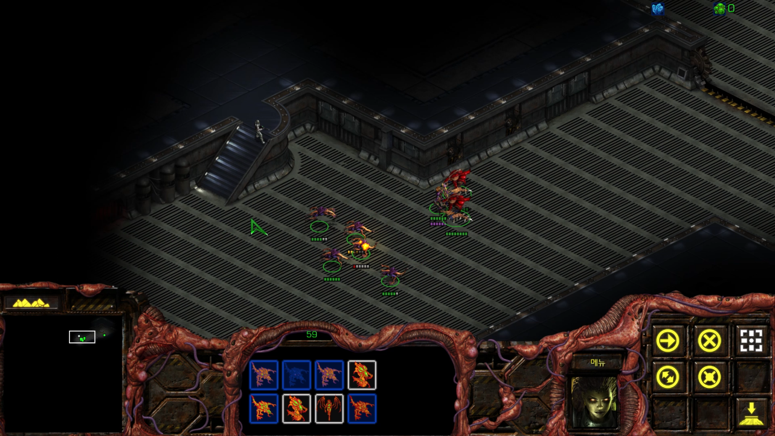 아래에는 저글링 네 마리가 있습니다. 헌터킬러를 최대한 보호하는 방향으로 활용해야겠습니다.