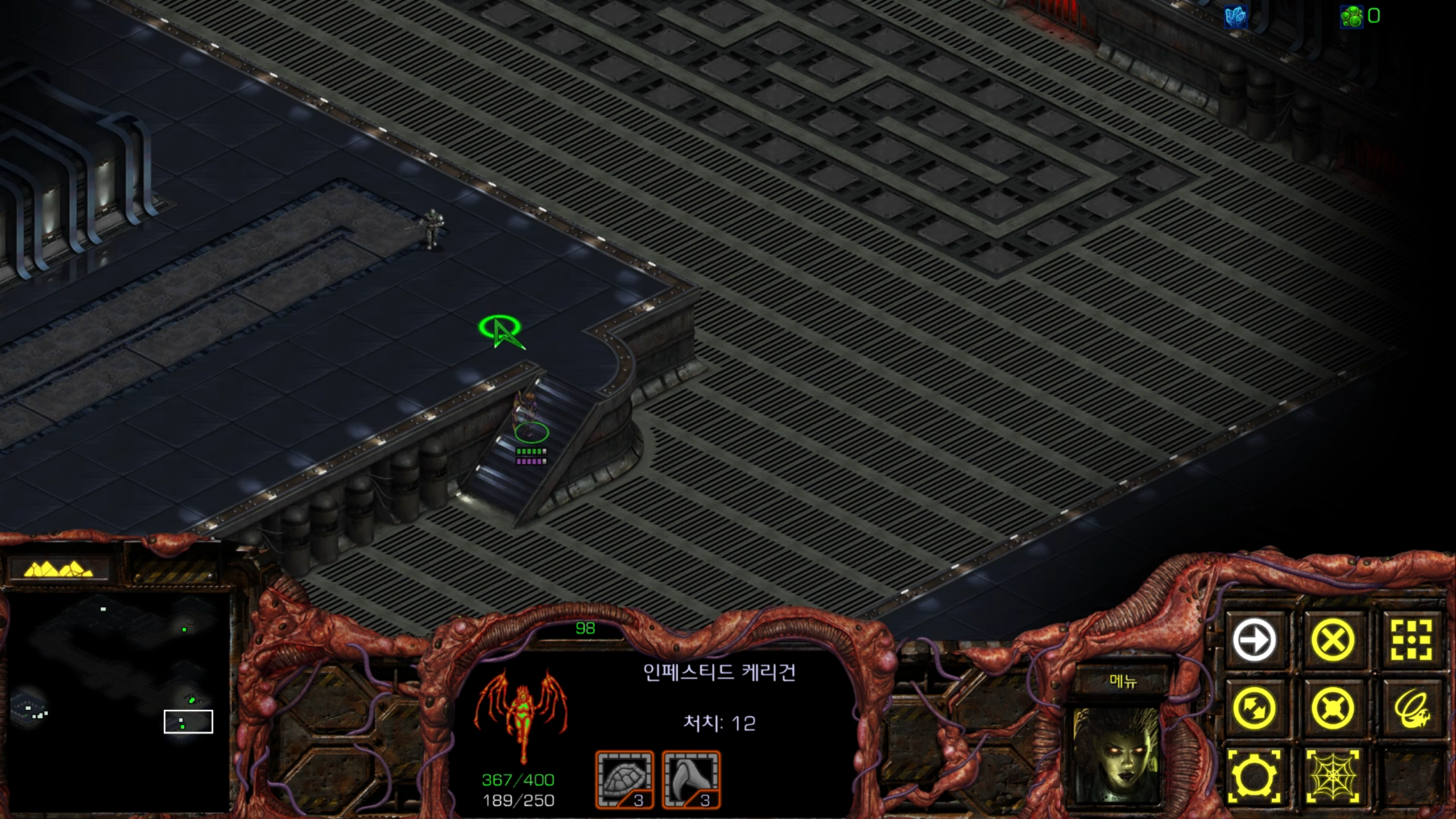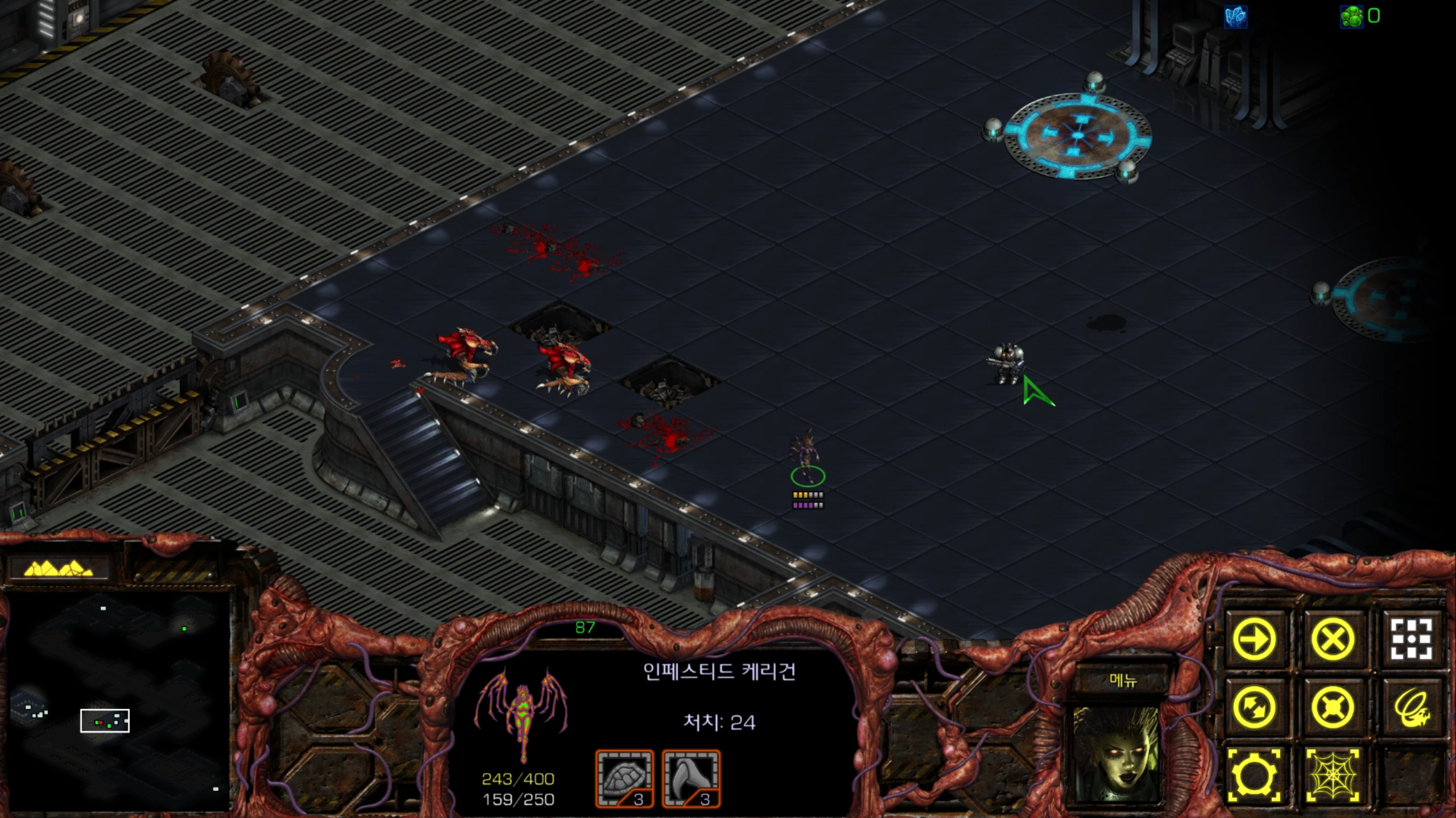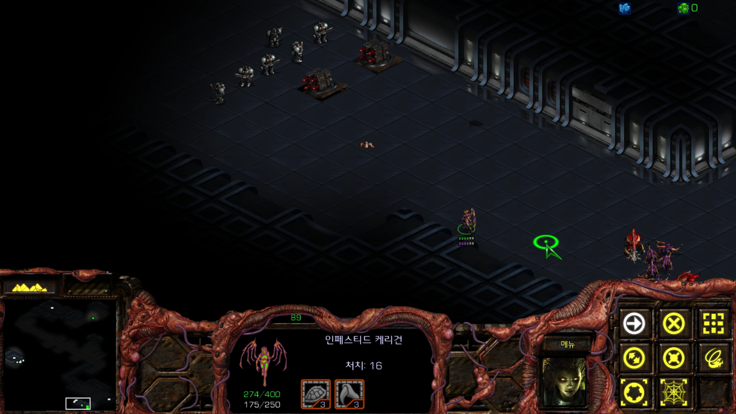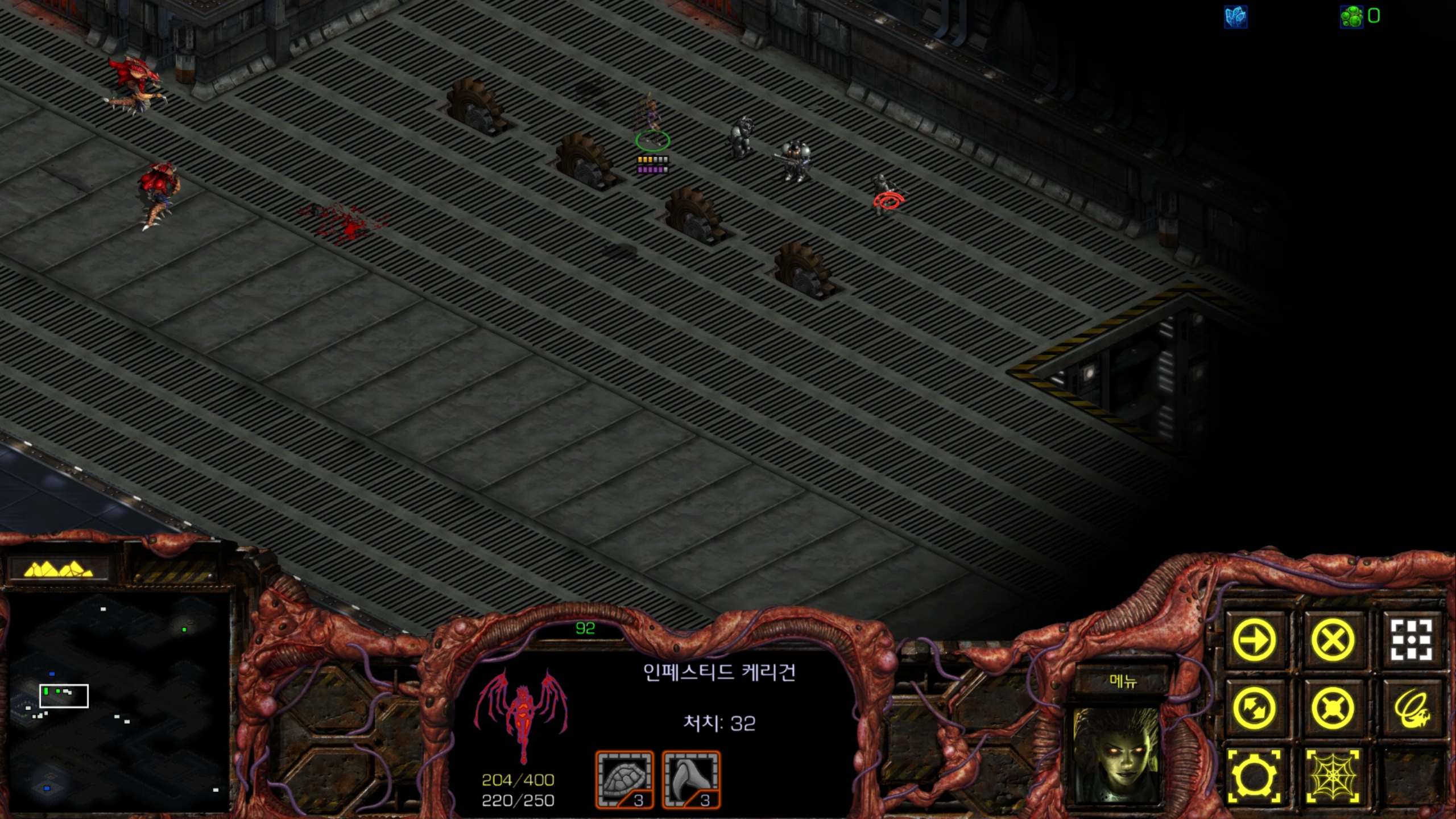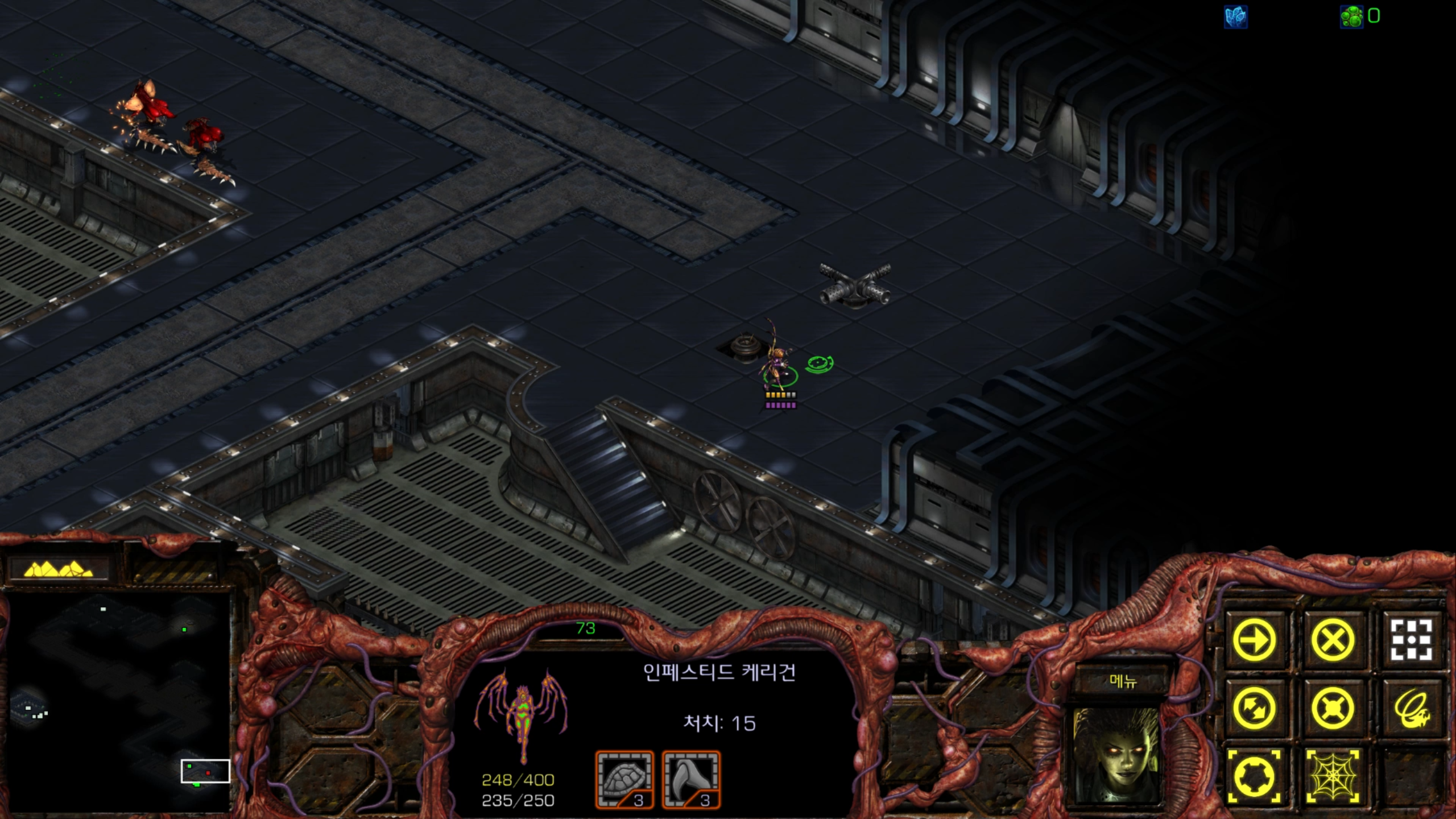아래에는 저글링 네 마리가 있습니다. 헌터킬러를 최대한 보호하는 방향으로 활용해야겠습니다.