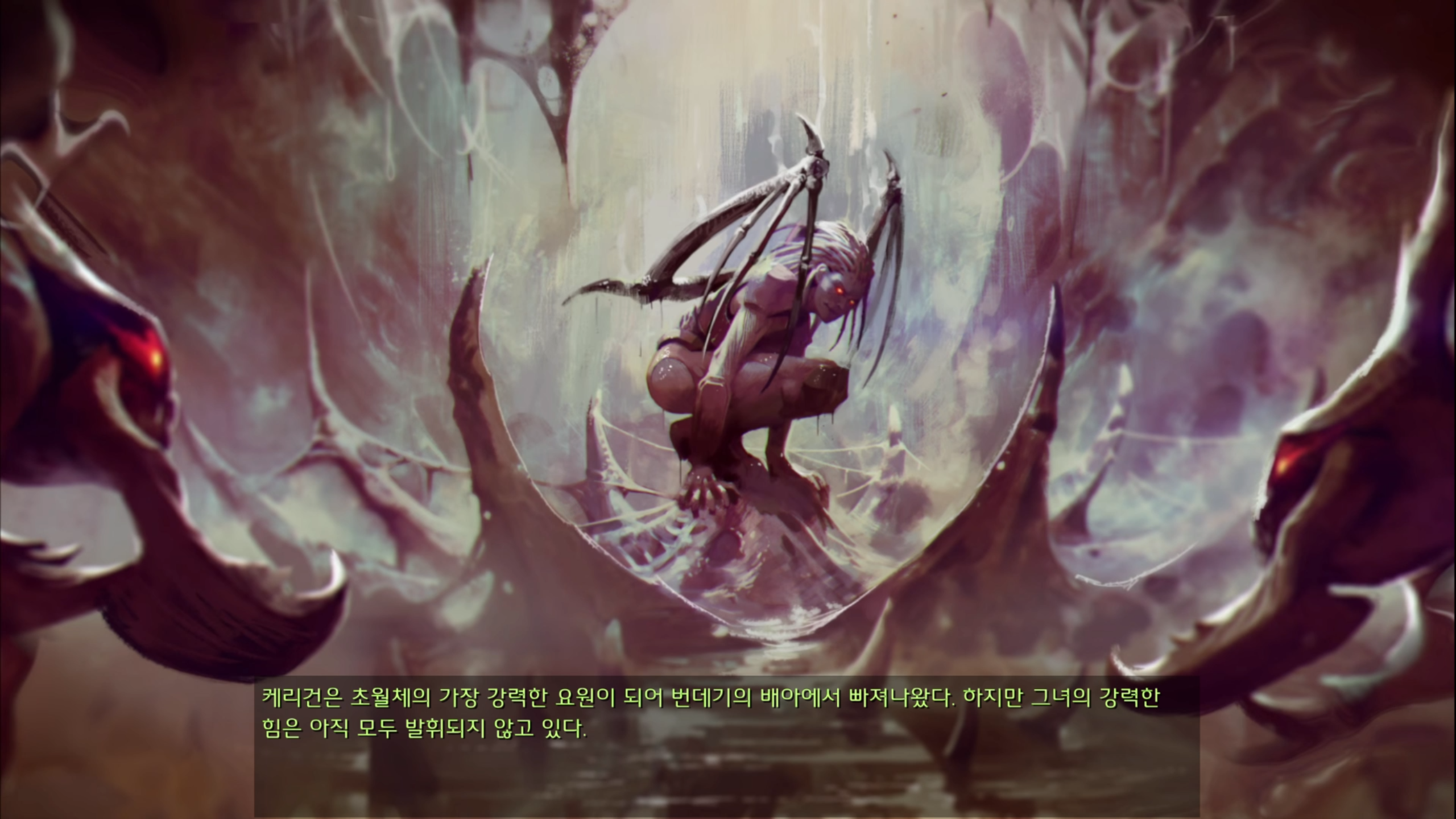 저번 미션에서 번데기에서 부화한 캐리건. 아직 그 힘의 잠재력은 다 발휘되고 있지 않은 상태입니다.