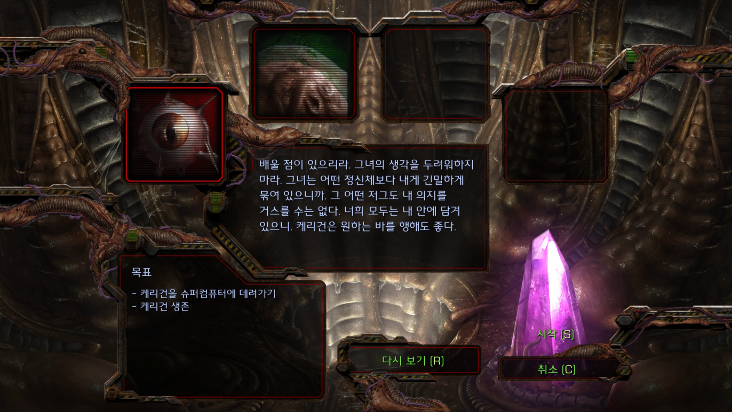 쿨하게 쌩까는 캐리건. 저 생명체는 자스였군요. 아마 캠페인 끝까지 분간은 못할 것 같습니다.