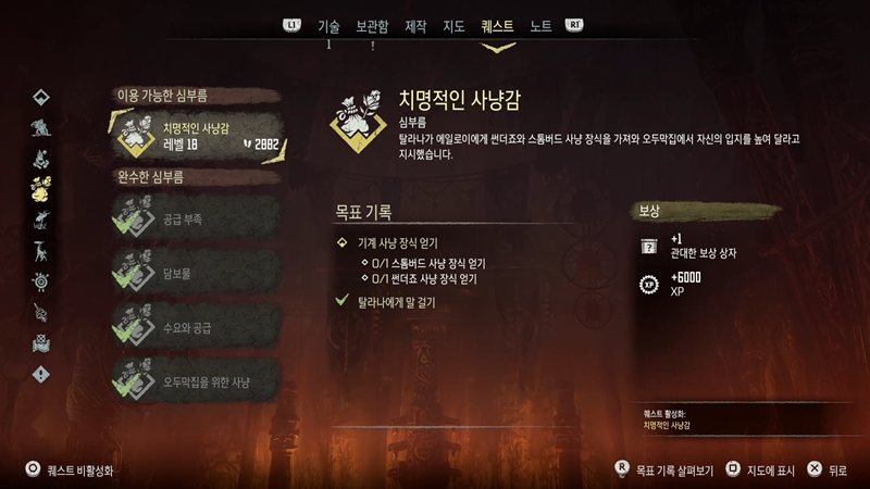 호라이즌 제로 던 9번째 심부름, 치명적인 사냥감입니다.