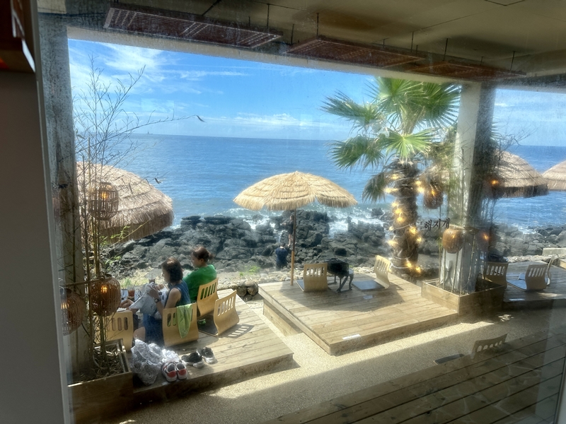 2층에 자리를 잡았는데, 창가 자리는 바다가 아주 잘 보여서 그런지 인기가 많습니다.