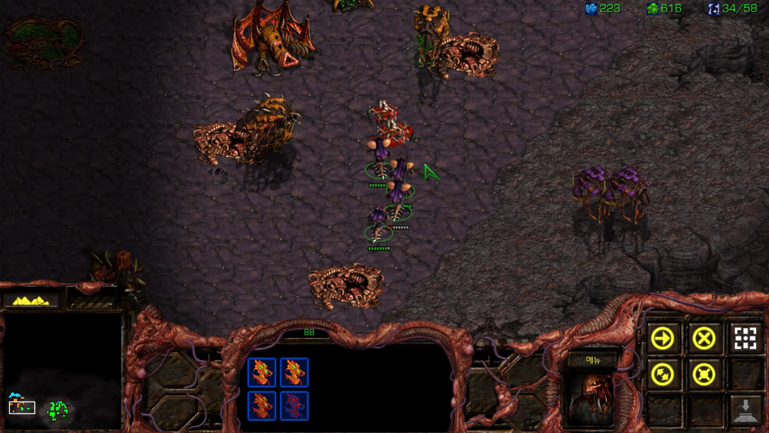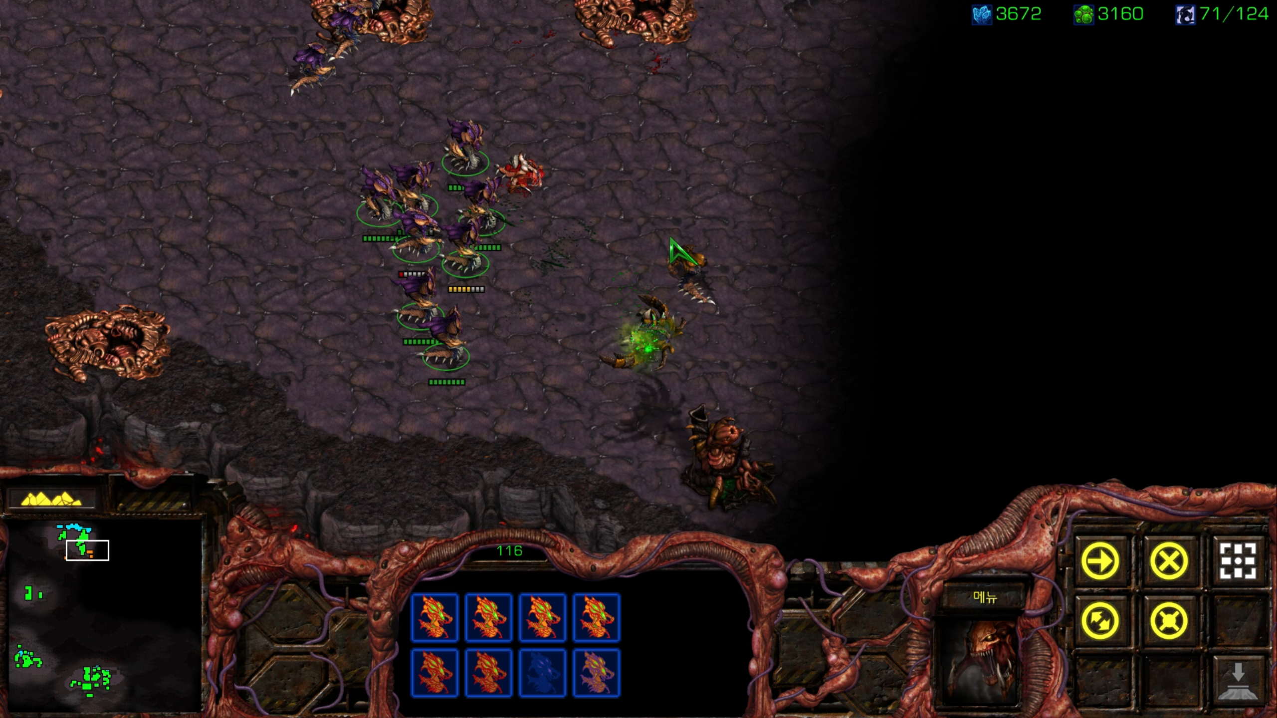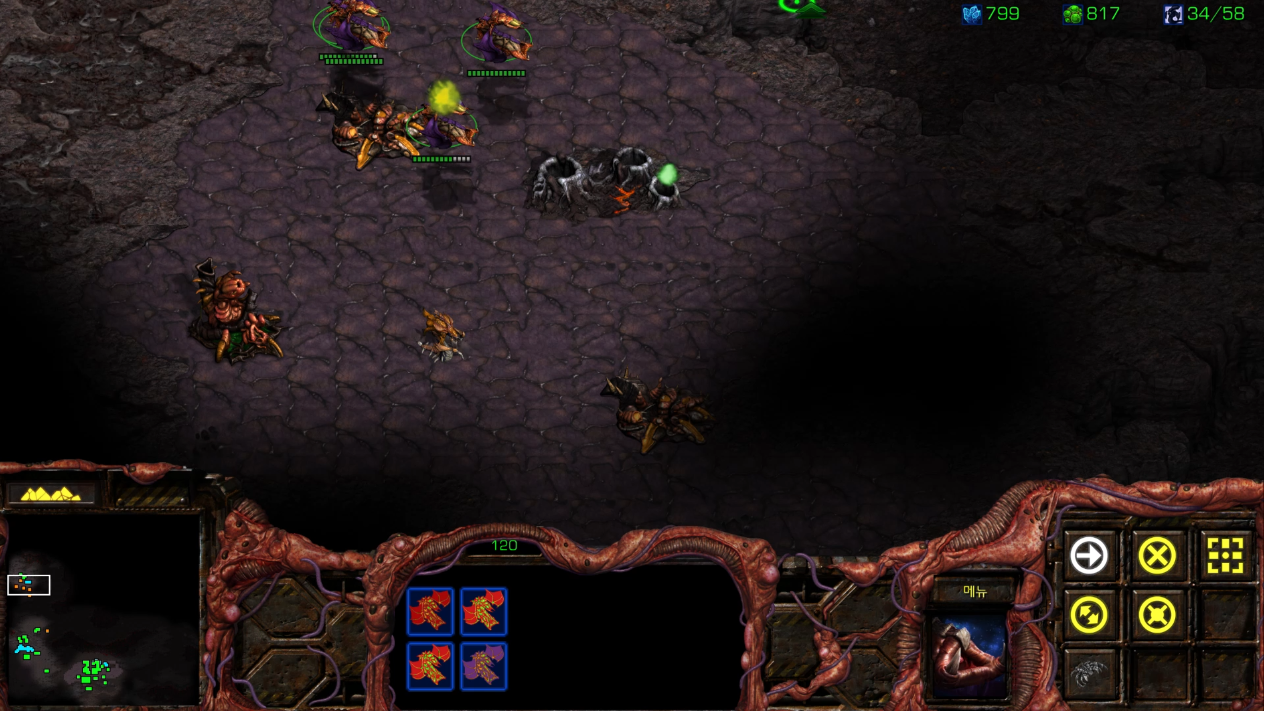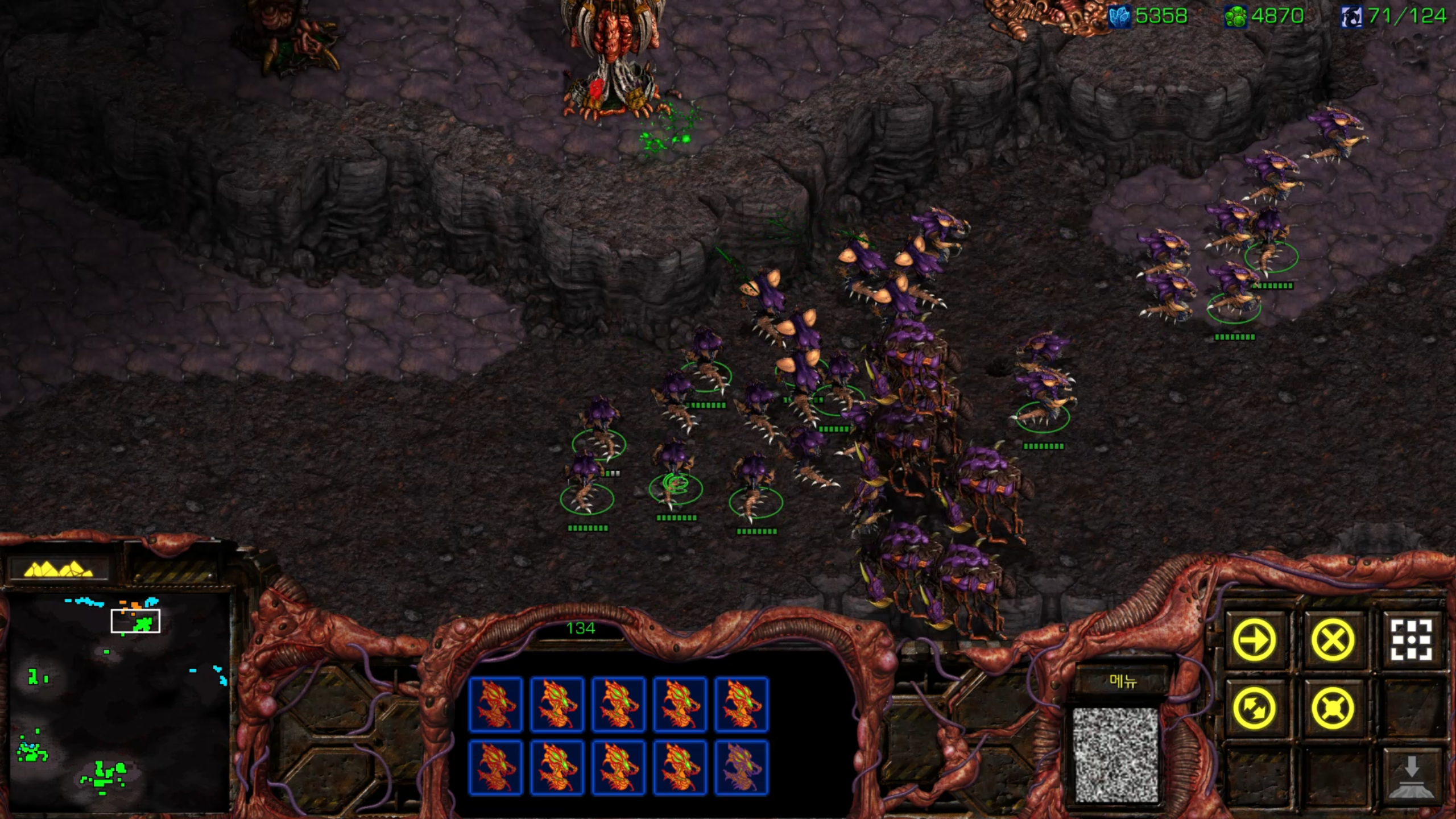 12시에 섬 기지 발견해서 뮤탈을 모으는 동안 정찰하다 발견한 또 다른 기지. 부숴줍시다.