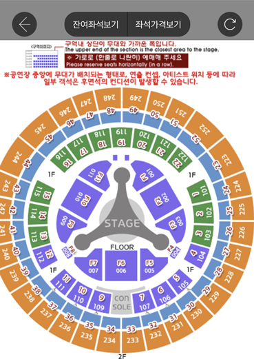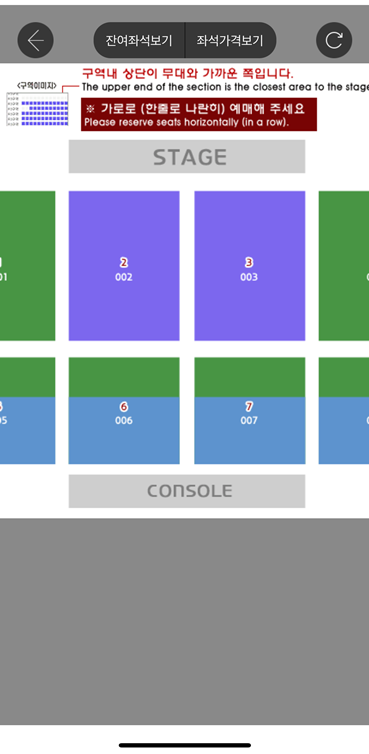그럼 공연장의 구조(?)와 구역이 나오게 되는데 원하는 구역을 터치합니다.