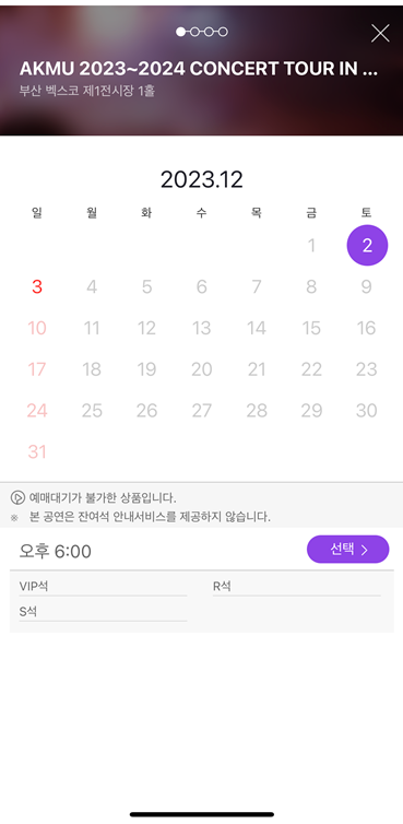 그럼 해당 화면으로 넘어오게 되는데 이 콘서트는 특이하게 현장 수령 선택이 안되네요?