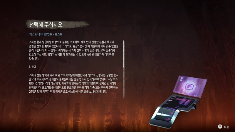 당시 프로젝트: 제로 던이 뭔지 알게 된 극소수의 사람들에게 주어진 선택지 입니다.