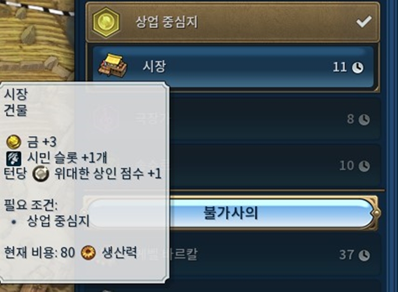 더 올릴 관련 건물이 없어서... 주둔지는 하나 있으니 적당한 것 같고... 상업 특수 지구 지어보겠습니다.