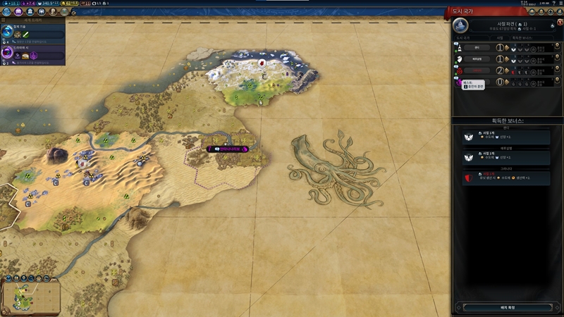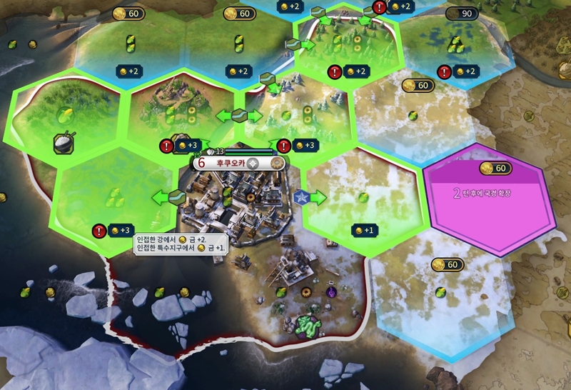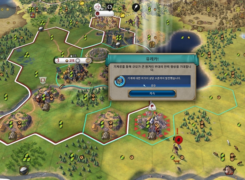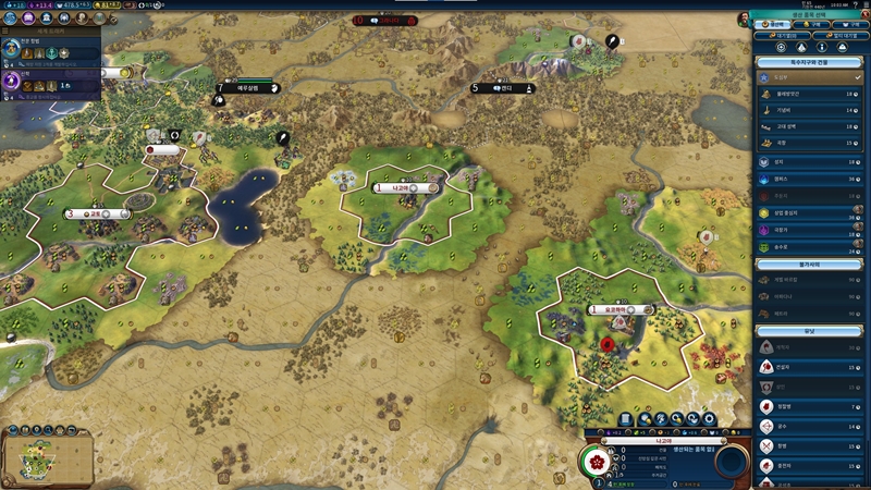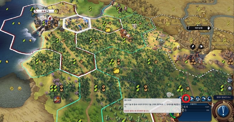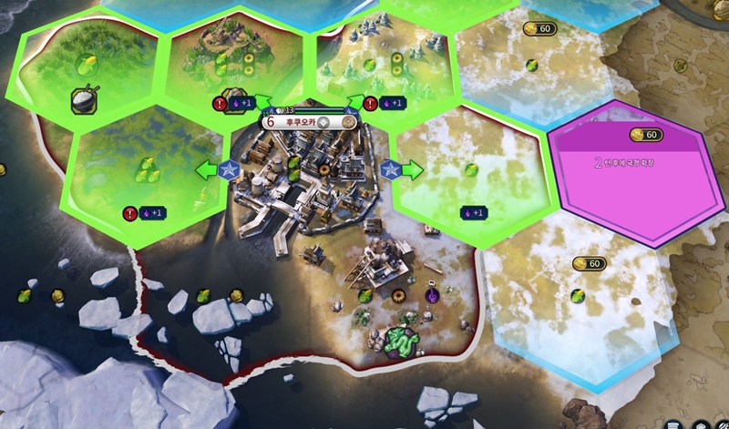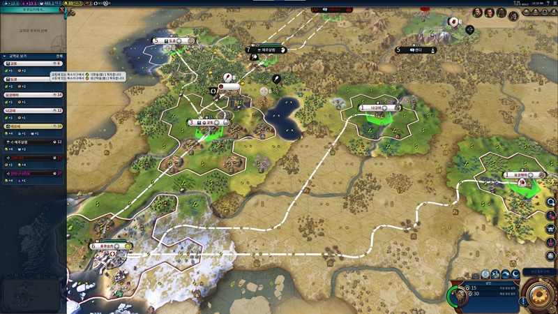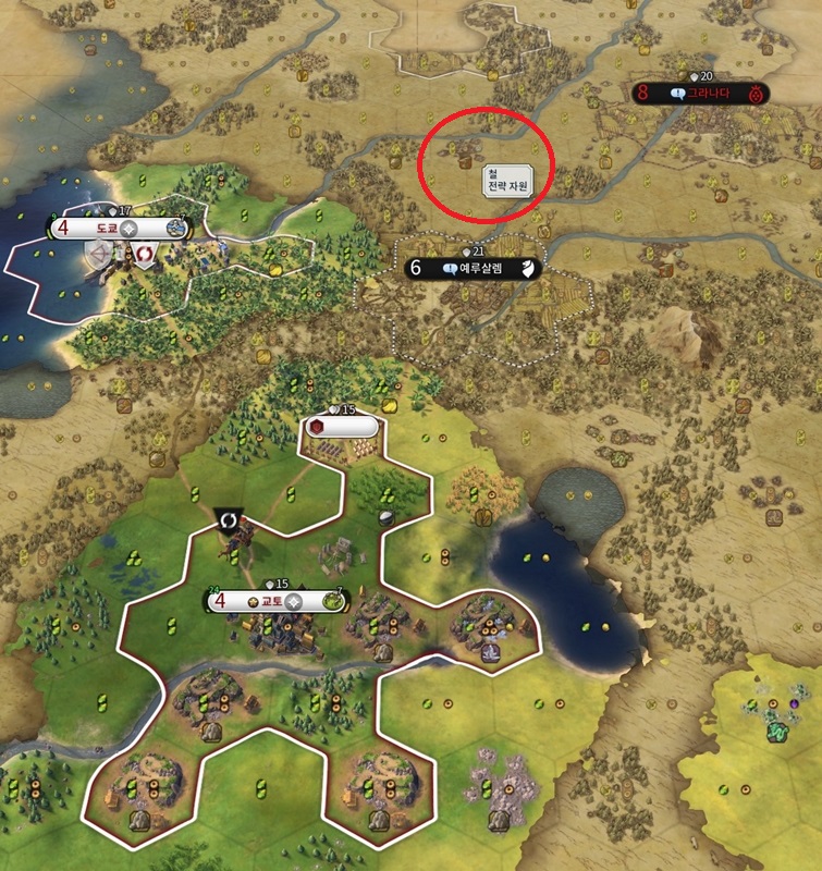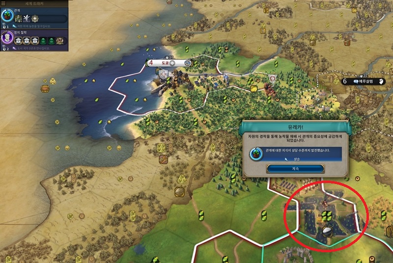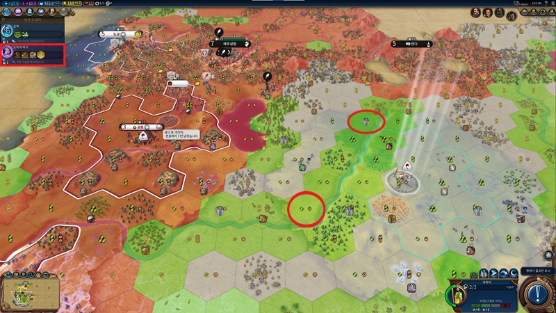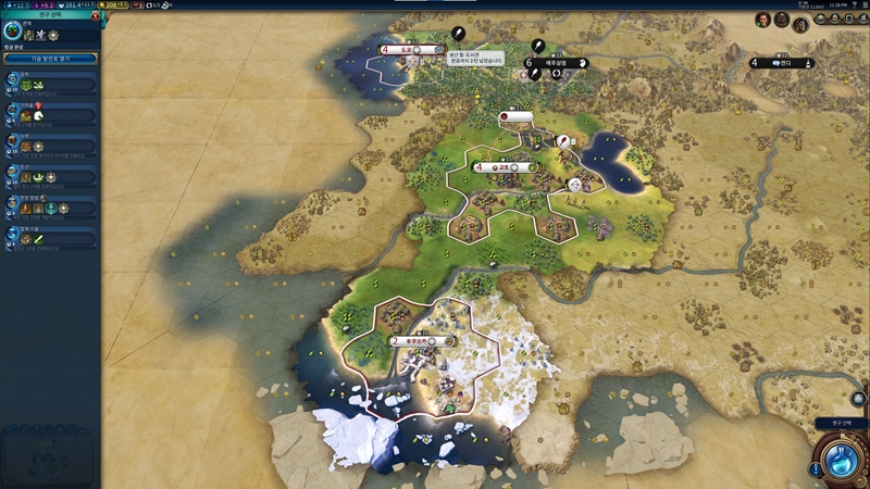 이전에 종교관으로 툰드라 보너스를 골랐기 때문에 전쟁으로 북쪽을 뚫는 것보다는 이쪽을 확보해 안정적인 내정을 굴리는 게 무난해 보입니다.