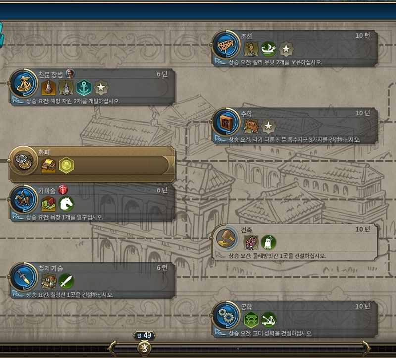 일단은 수학, 기마술, 철제 기술은 유레카를 터뜨리겠다는 목표로 각 각 연구를 절반씩만 올려놓고 상황을 좀 보겠습니다.