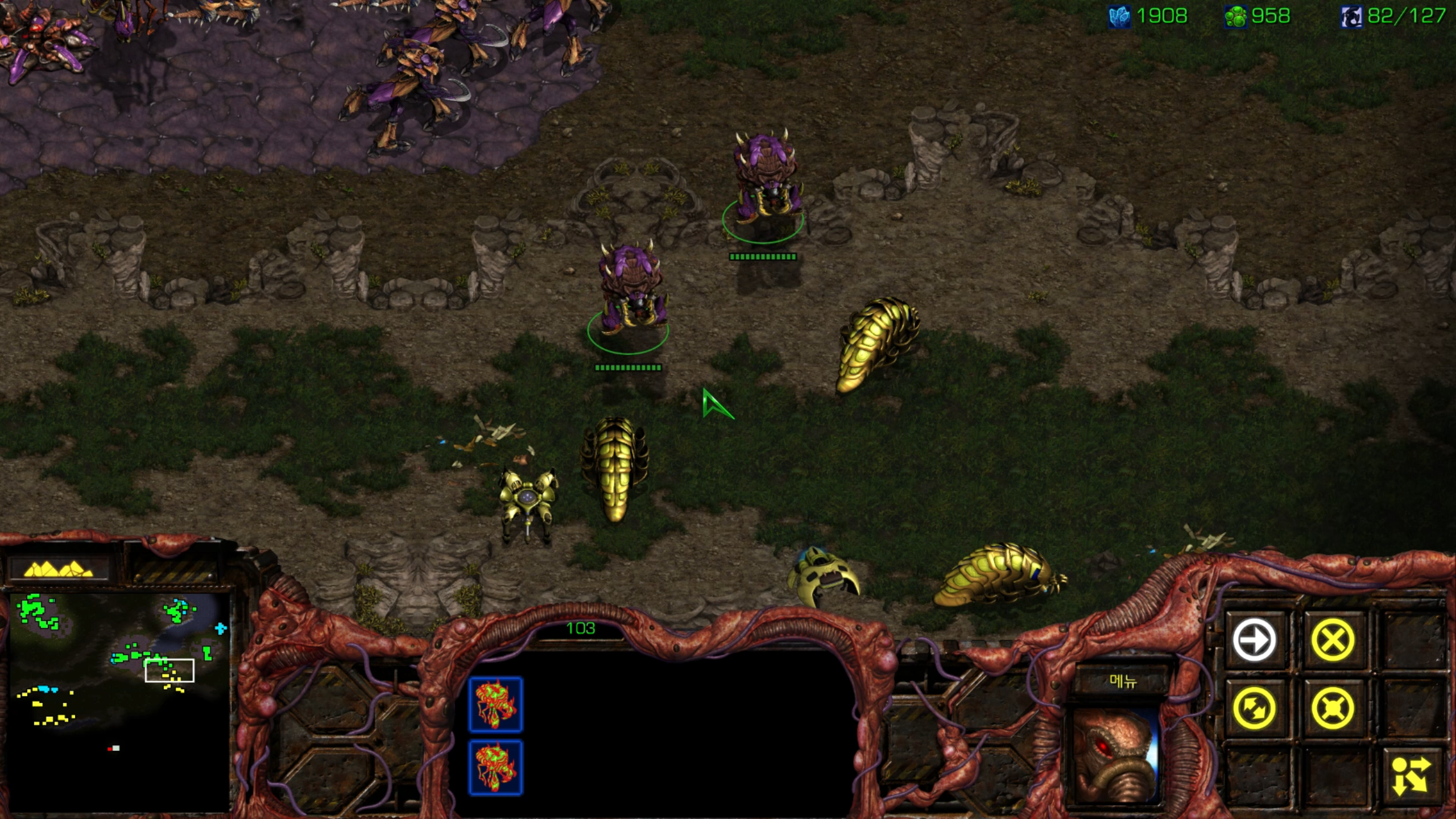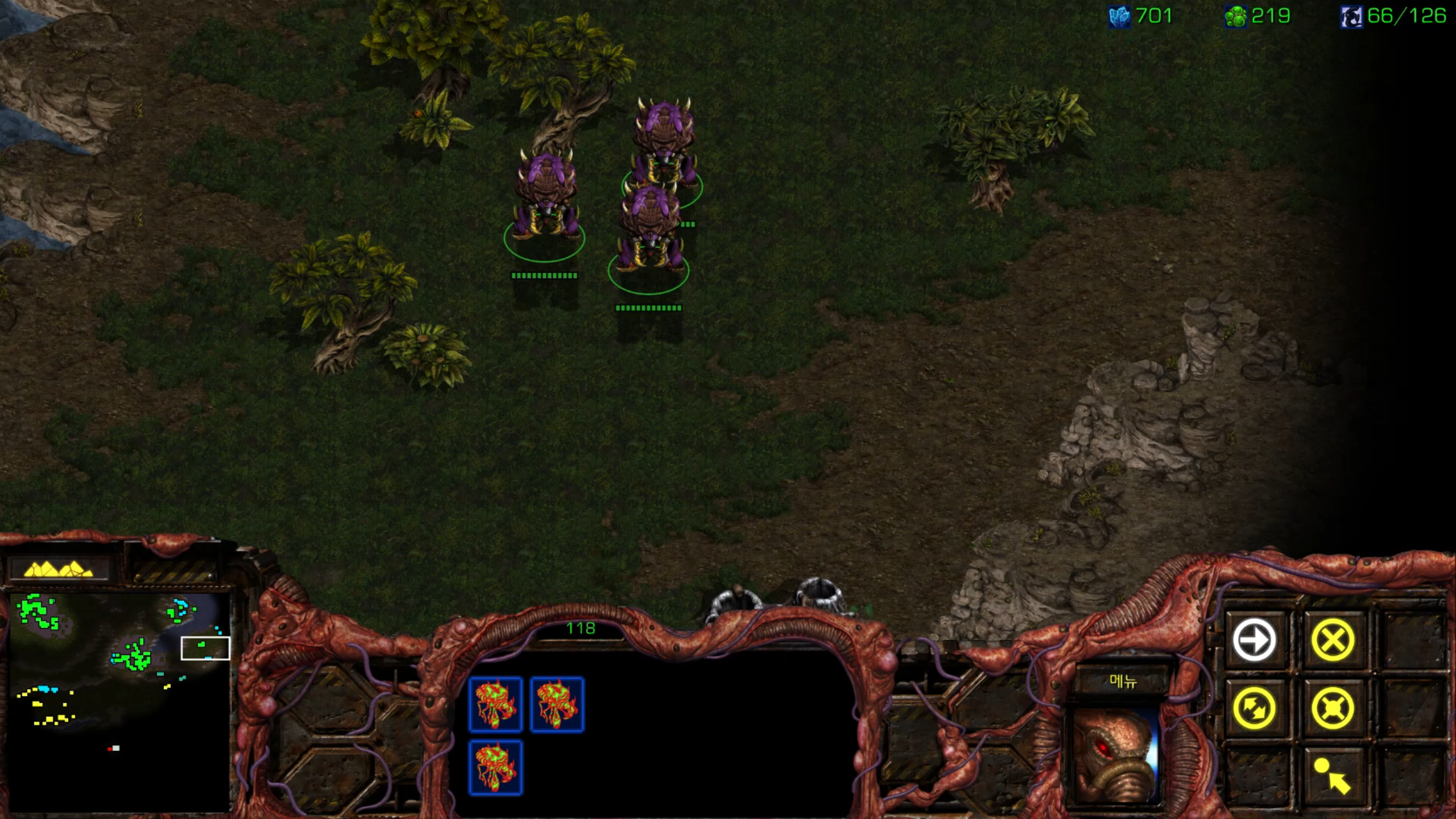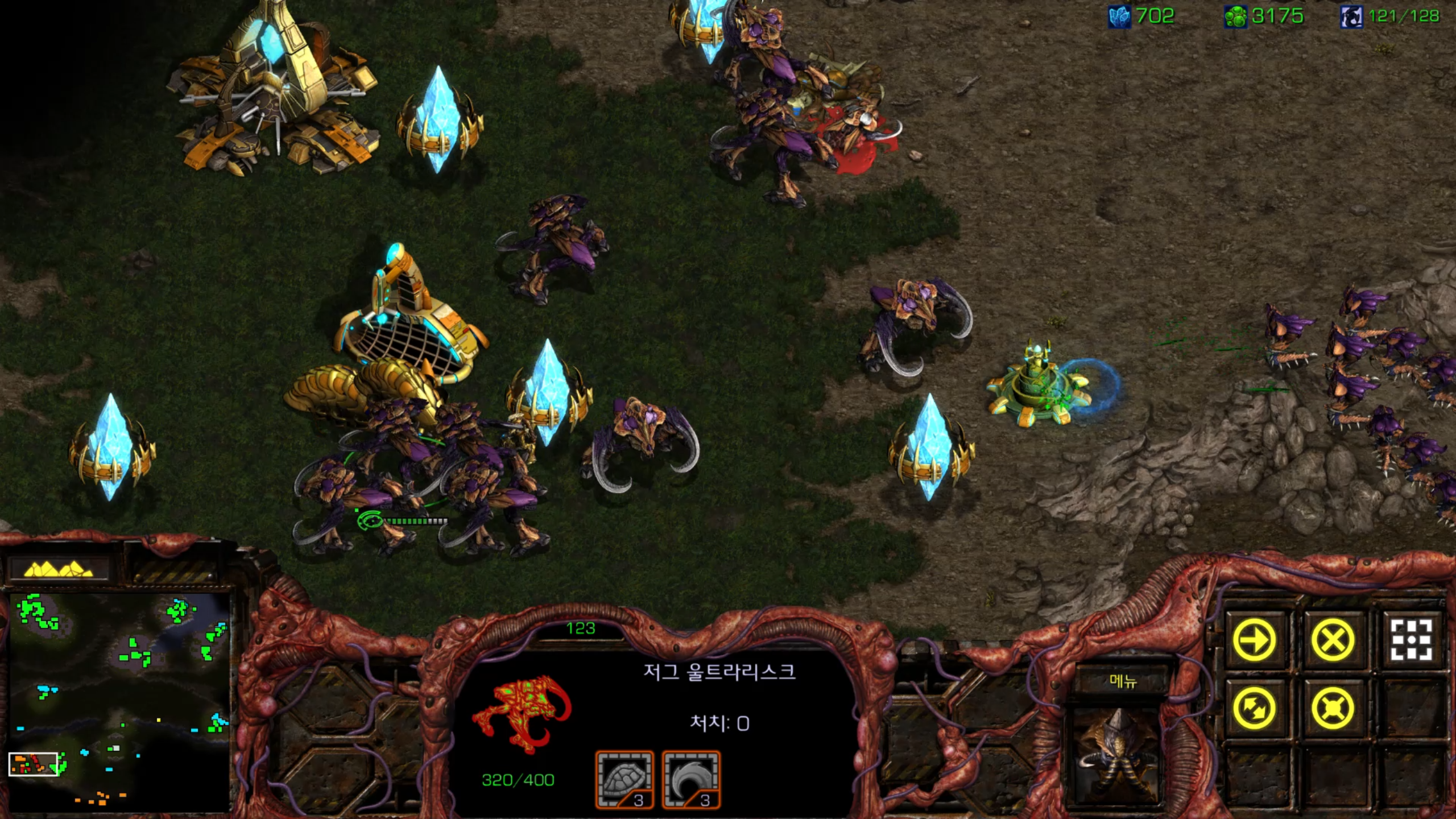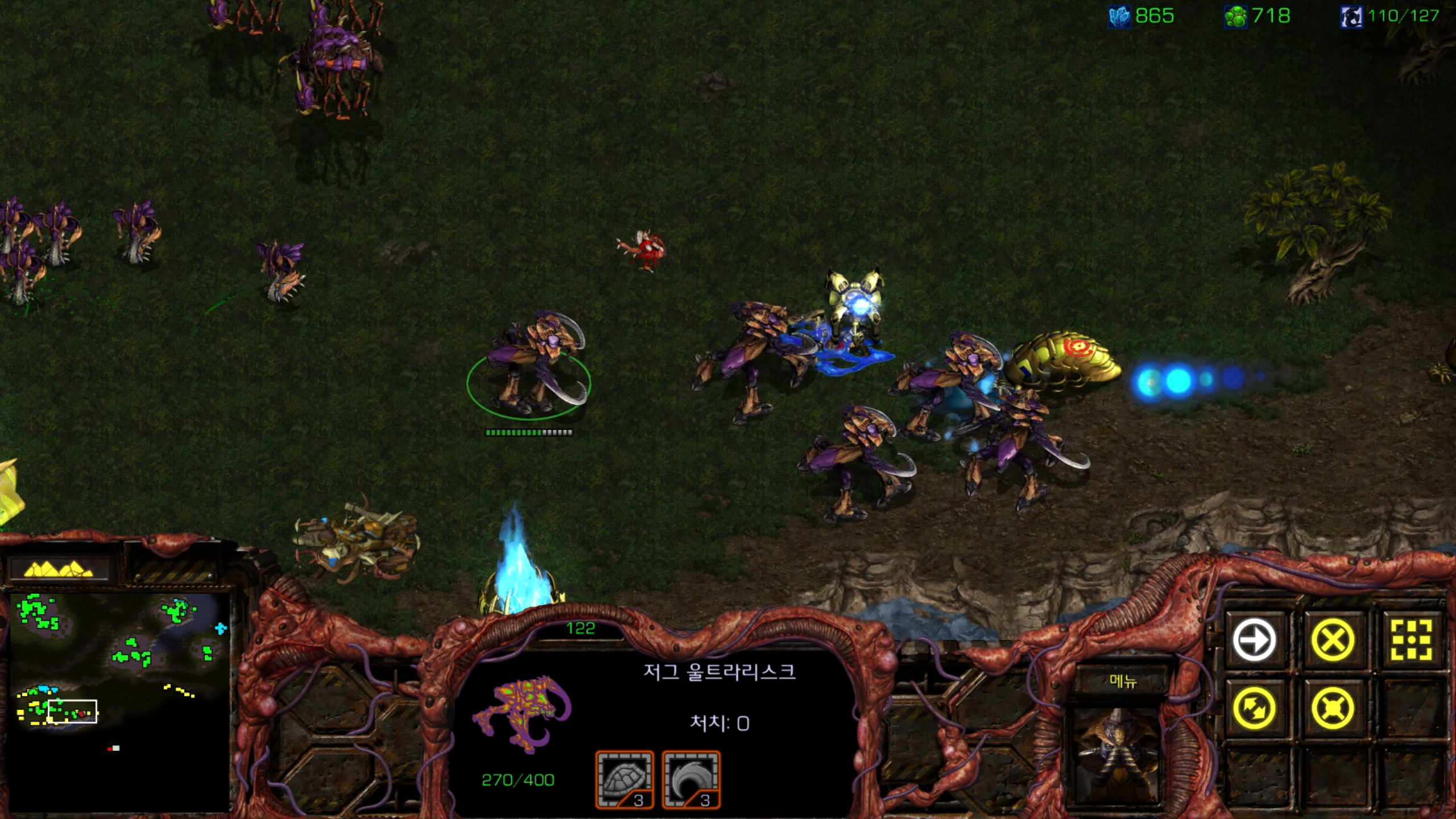사실 거의 마지막 미션 같아서 울트라를 뽑아봤습니다. 그래도 저그 최종병기 같은 유닛인데 한 번은 써봐야죠.
