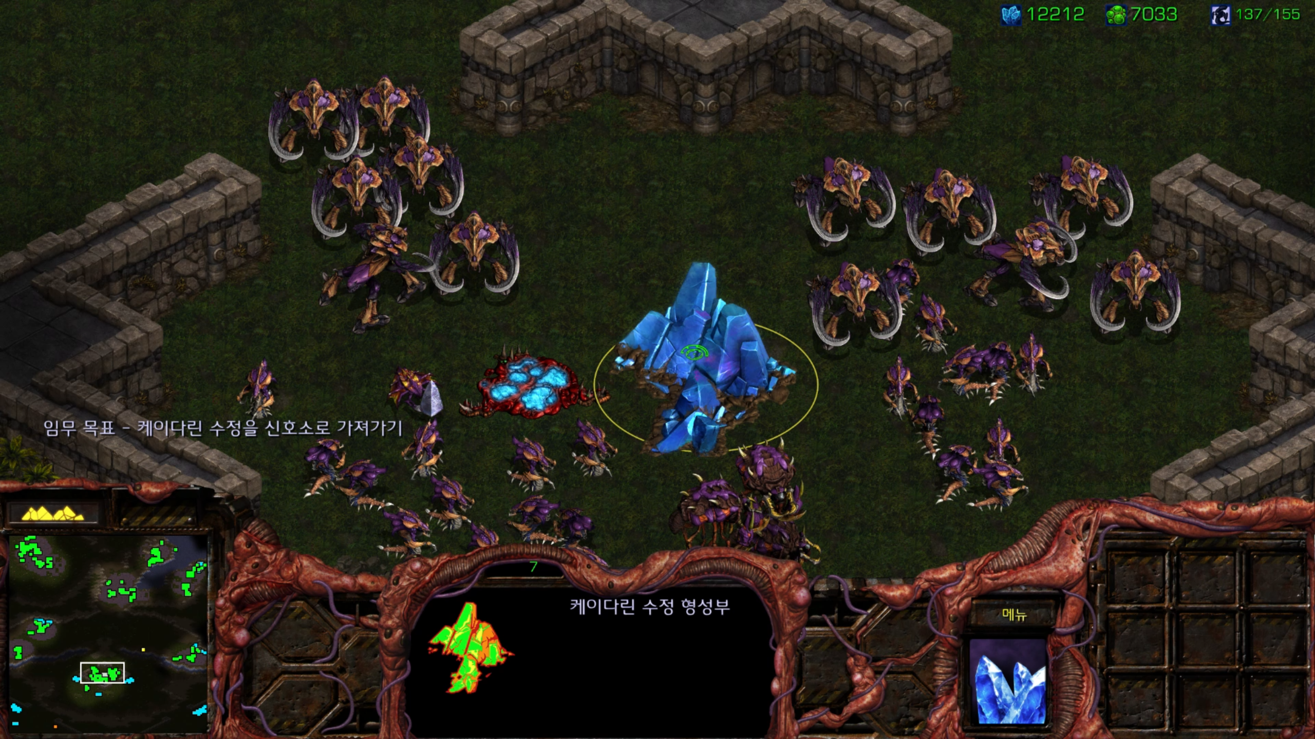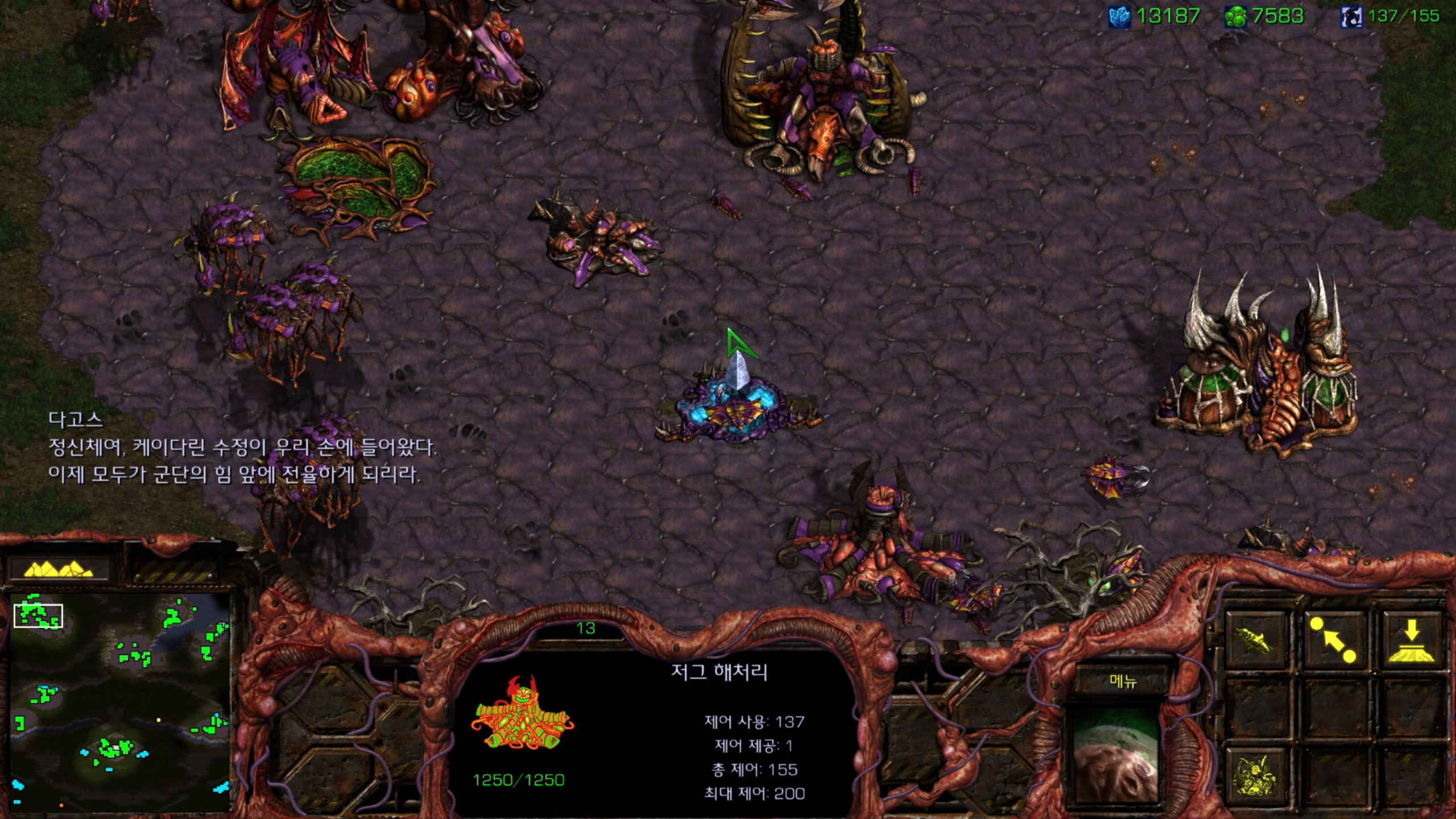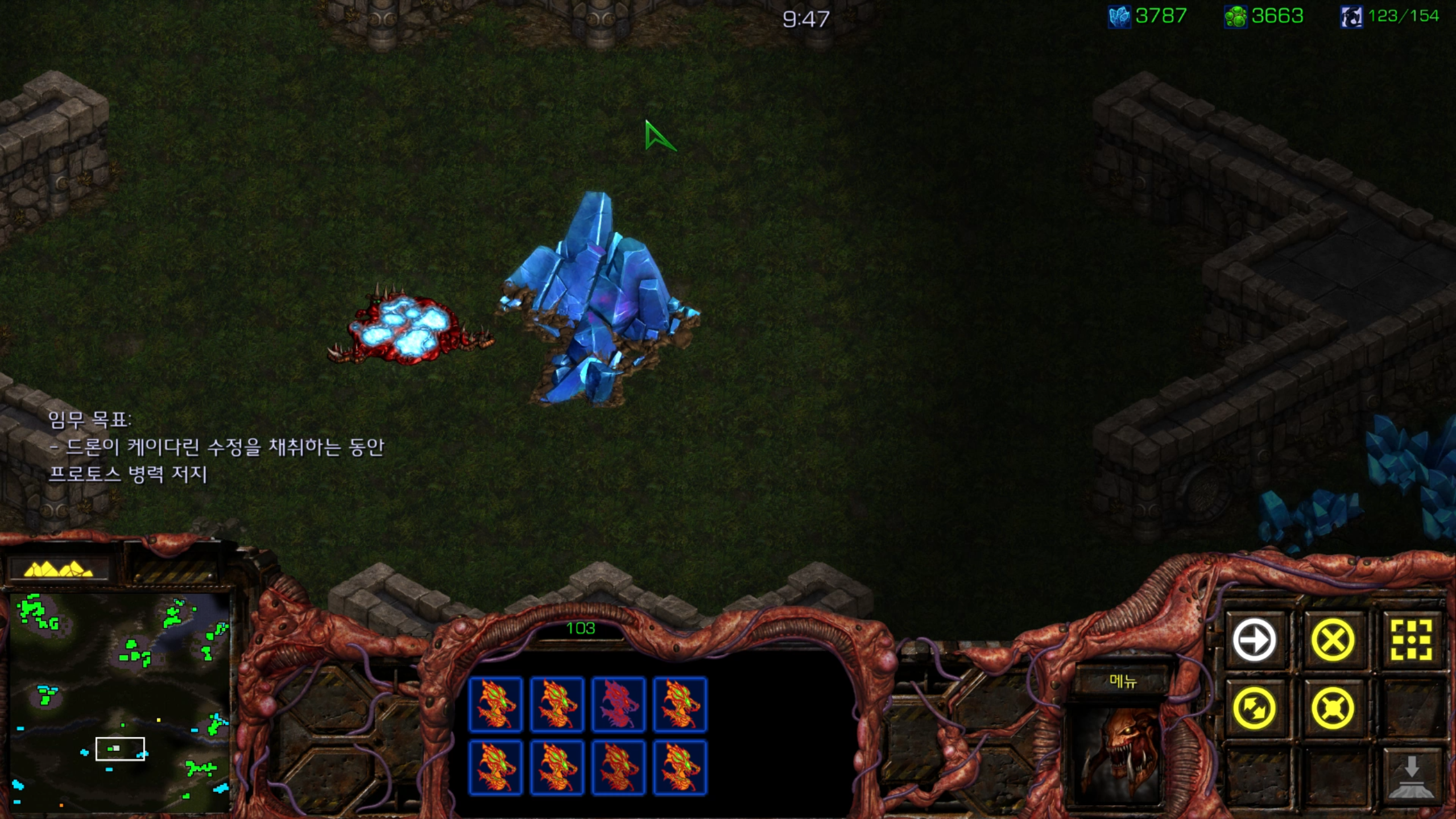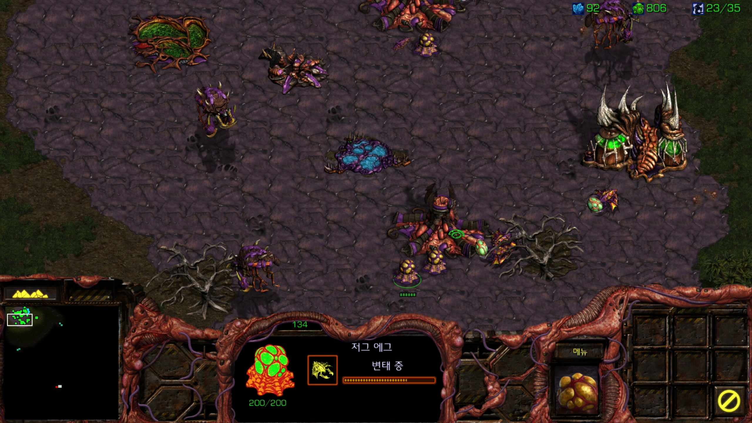 사실 거의 마지막 미션 같아서 울트라를 뽑아봤습니다. 그래도 저그 최종병기 같은 유닛인데 한 번은 써봐야죠.